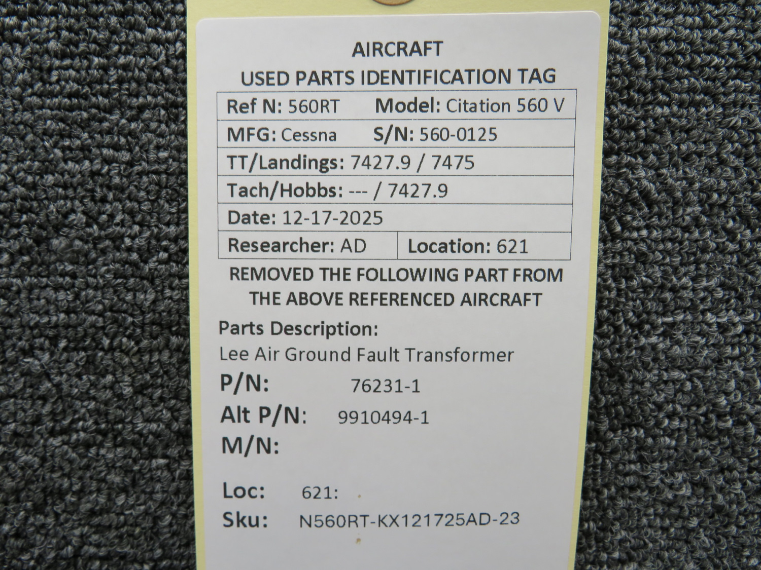 Unless specifically noted, most of our used airplane parts are sold in the condition they were removed, which means you should expect the usual signs of wear and tear.
