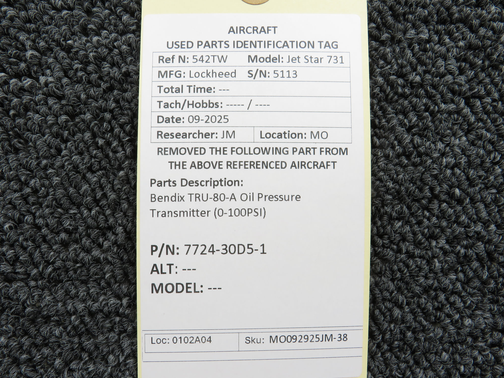 Unless specifically noted, most of our used airplane parts are sold in the condition they were removed, which means you should expect the usual signs of wear and tear.