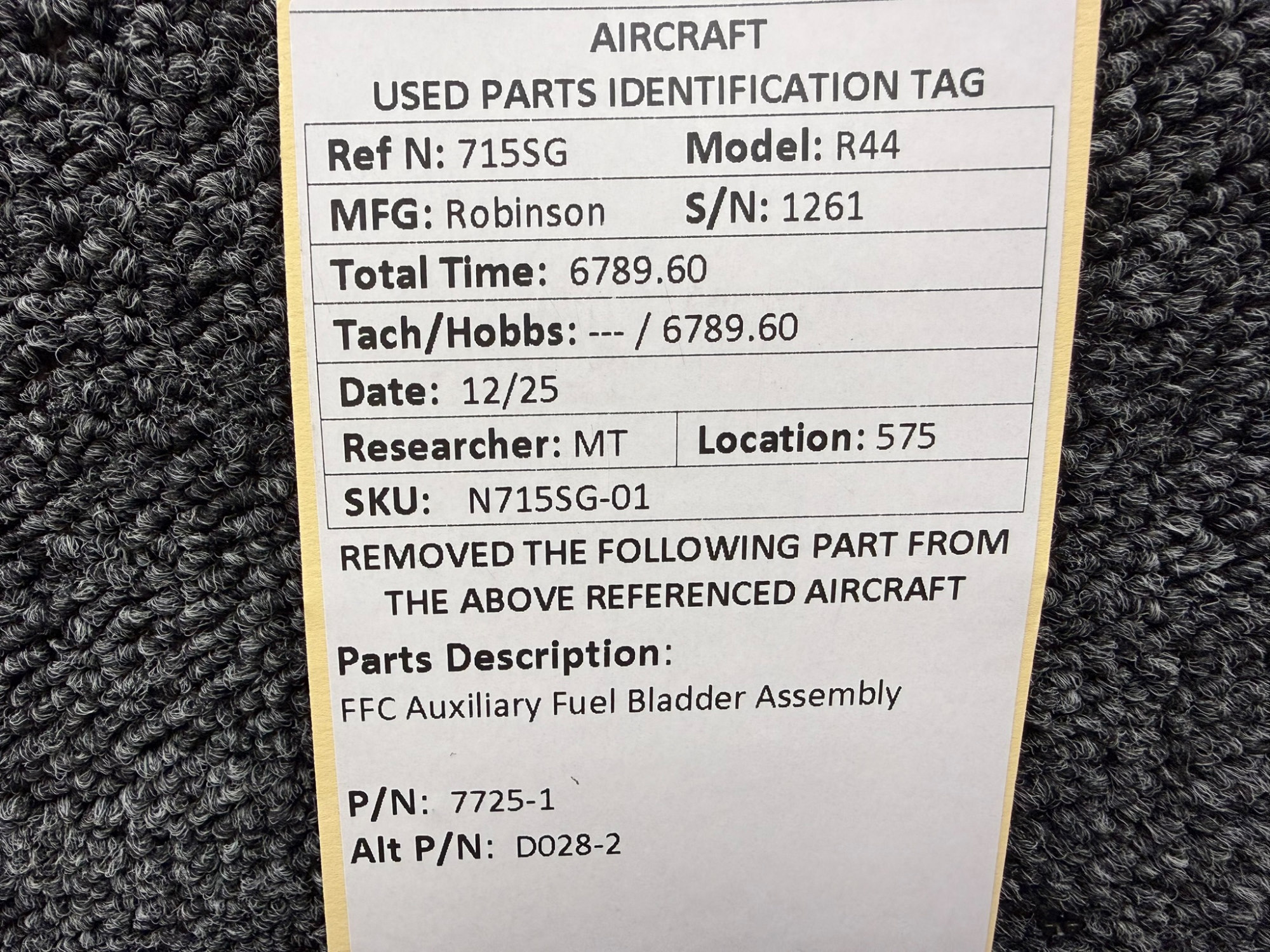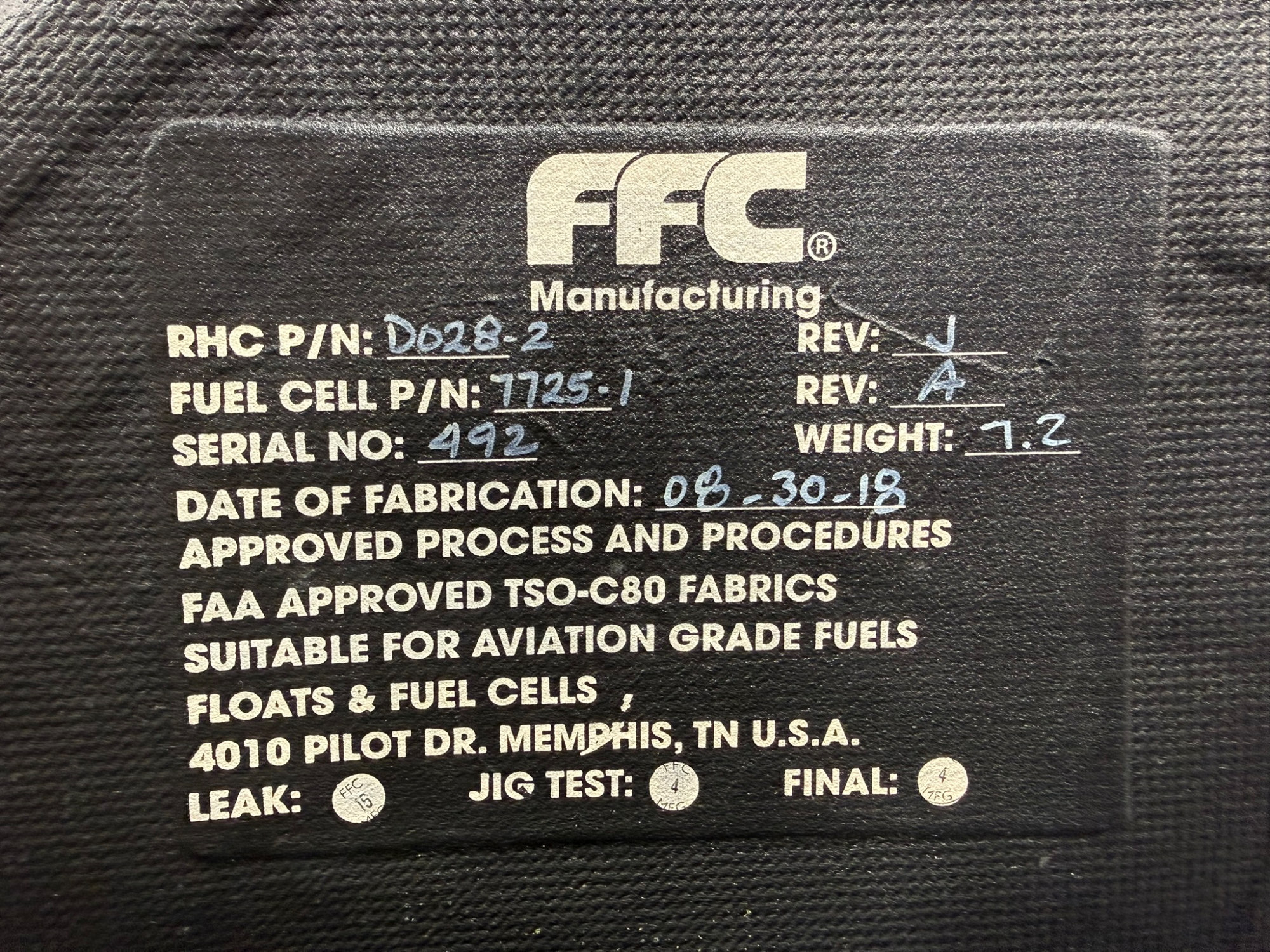 - FFC Bladder Part Number: 7725-1