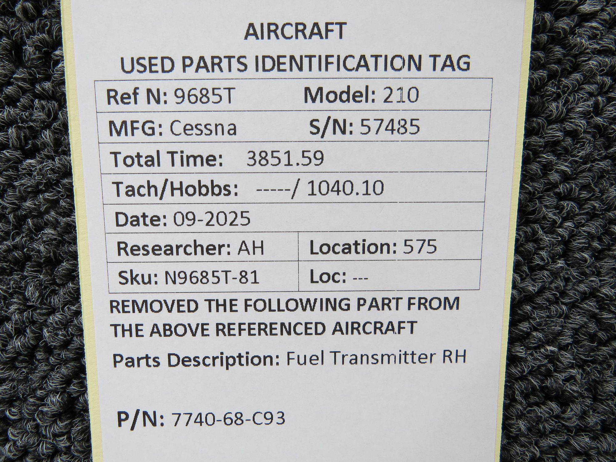 Unless specifically noted, most of our used airplane parts are sold in the condition they were removed, which means you should expect the usual signs of wear and tear.