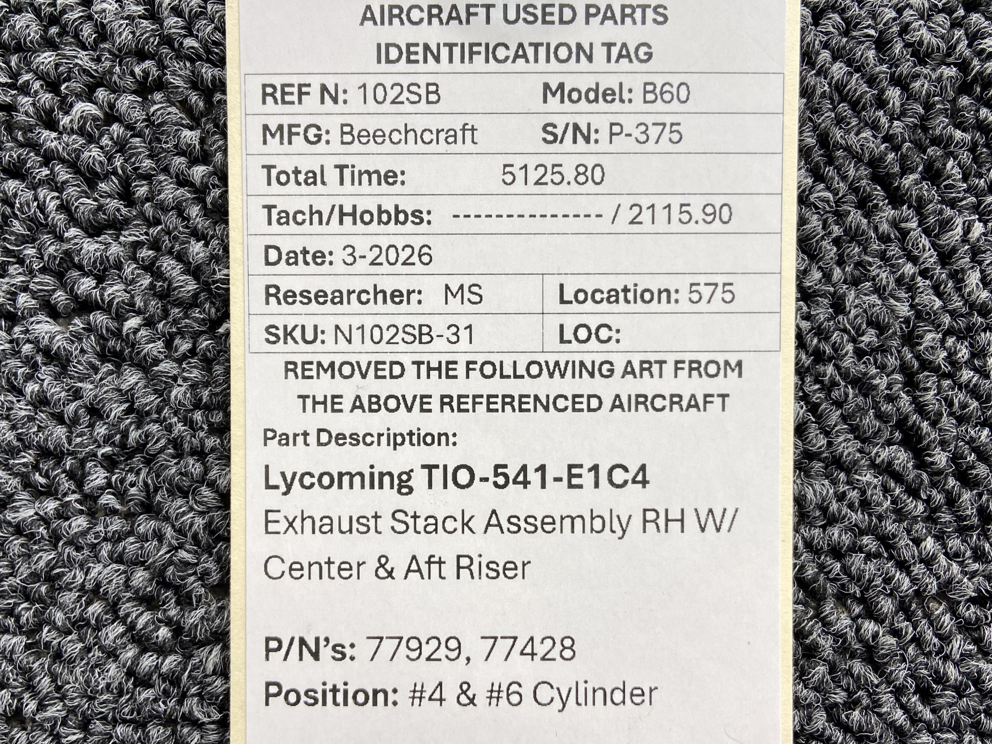 - Removed From: Lycoming TIO-541-E1C4