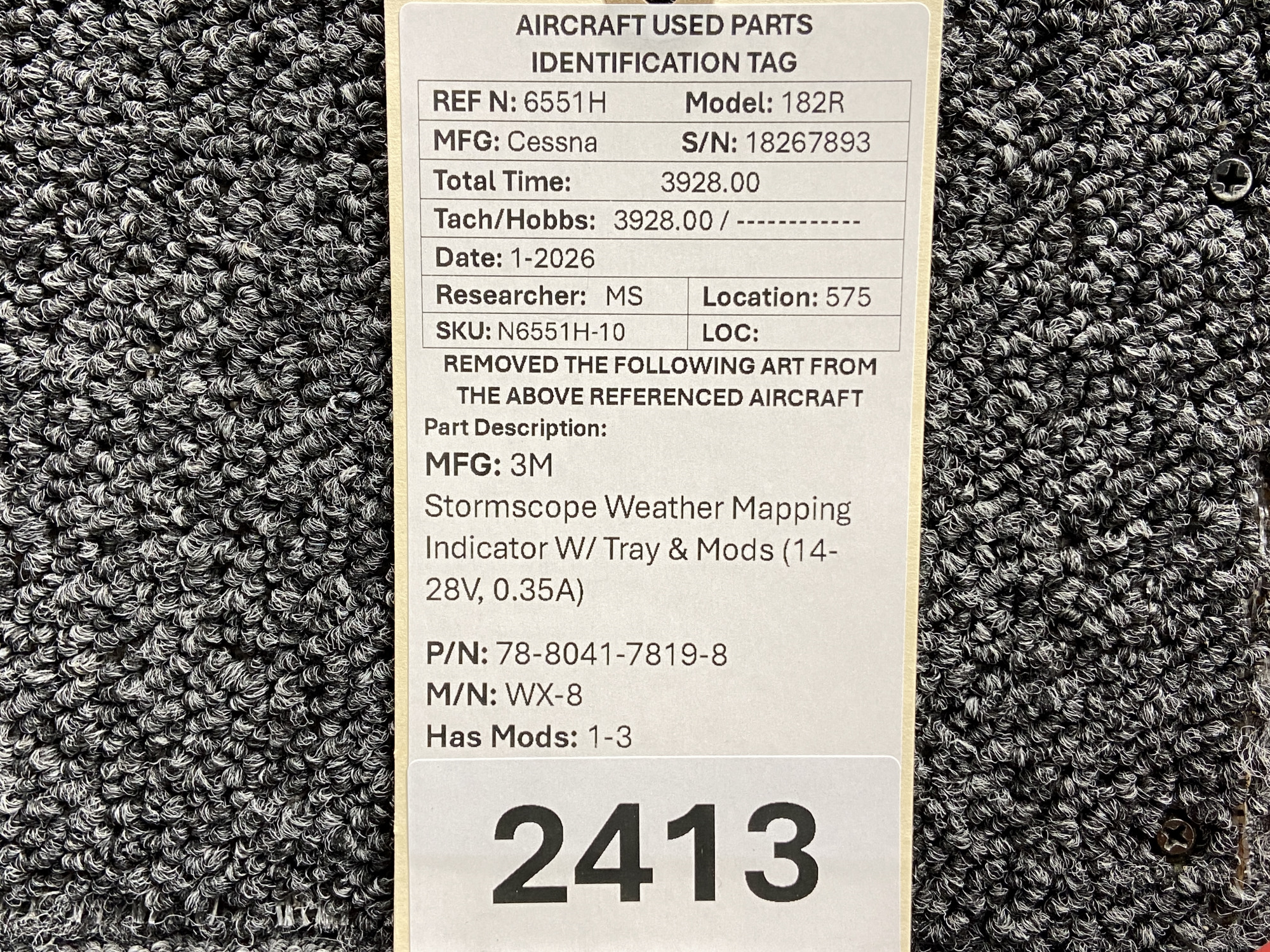 Unless specifically noted, most of our used airplane parts are sold in the condition they were removed, which means you should expect the usual signs of wear and tear.