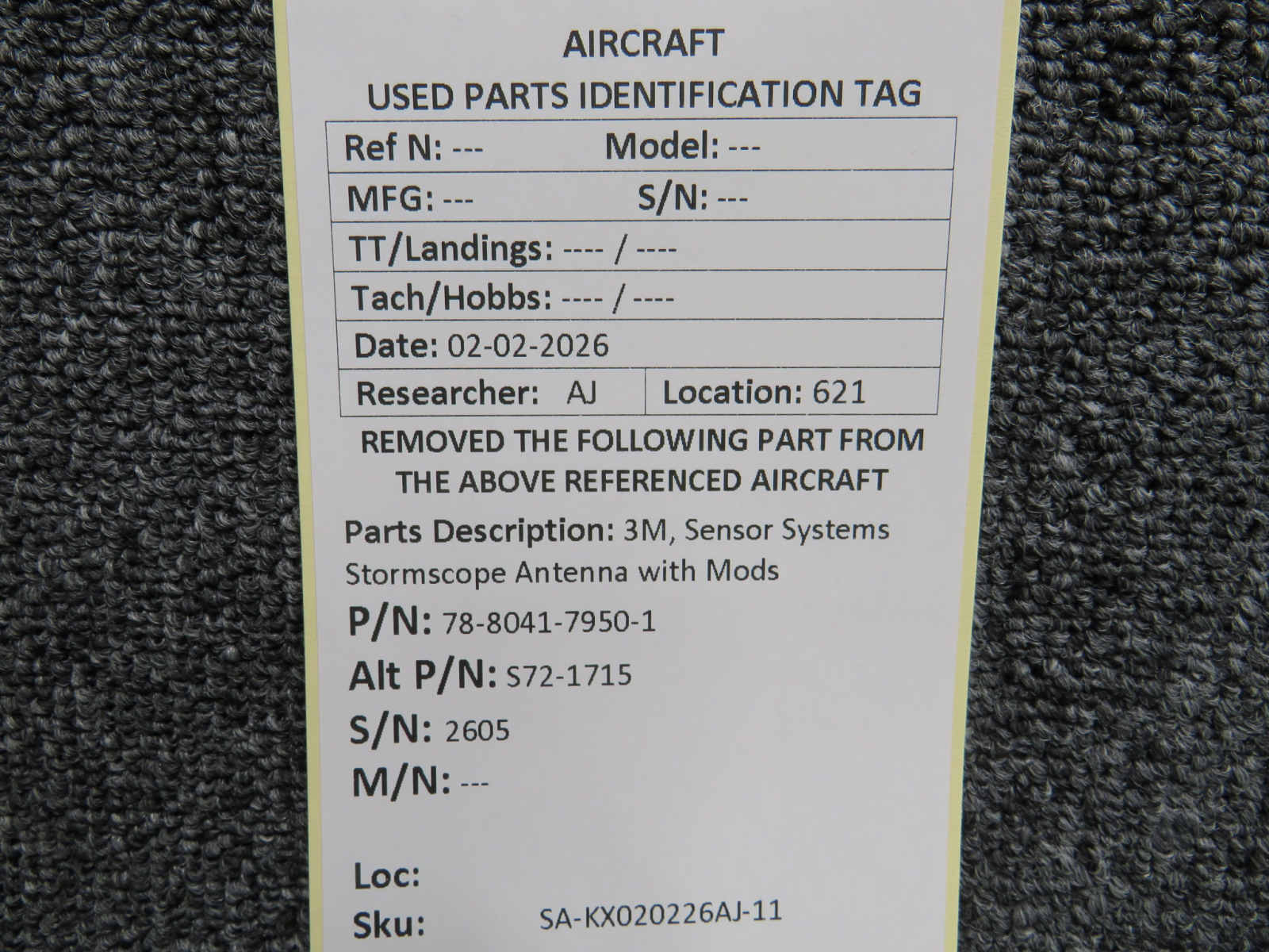 Unless specifically noted, most of our used airplane parts are sold in the condition they were removed, which means you should expect the usual signs of wear and tear.