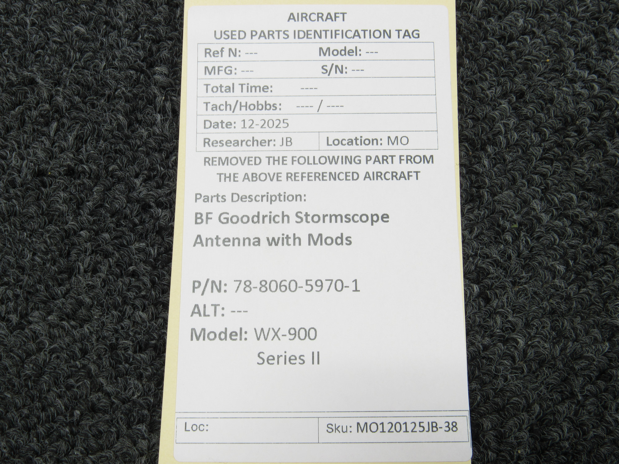 Unless specifically noted, most of our used airplane parts are sold in the condition they were removed, which means you should expect the usual signs of wear and tear.