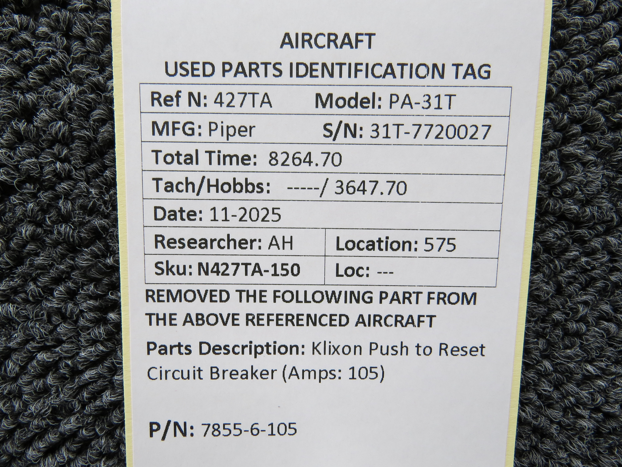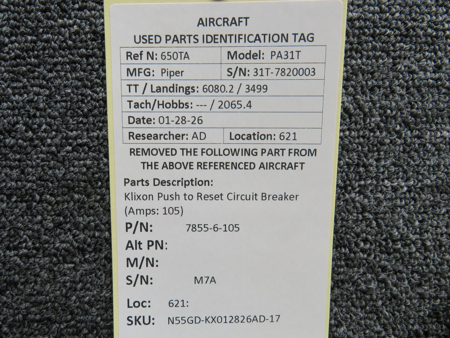 Unless specifically noted, most of our used airplane parts are sold in the condition they were removed, which means you should expect the usual signs of wear and tear.