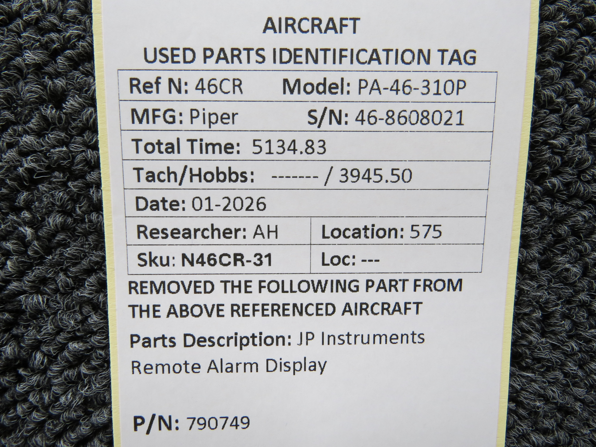 Unless specifically noted, most of our used airplane parts are sold in the condition they were removed, which means you should expect the usual signs of wear and tear.