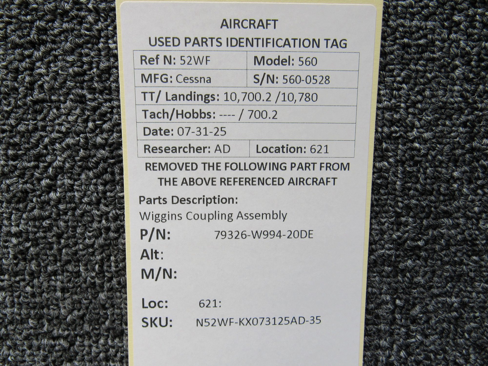 Unless specifically noted, most of our used airplane parts are sold in the condition they were removed, which means you should expect the usual signs of wear and tear.