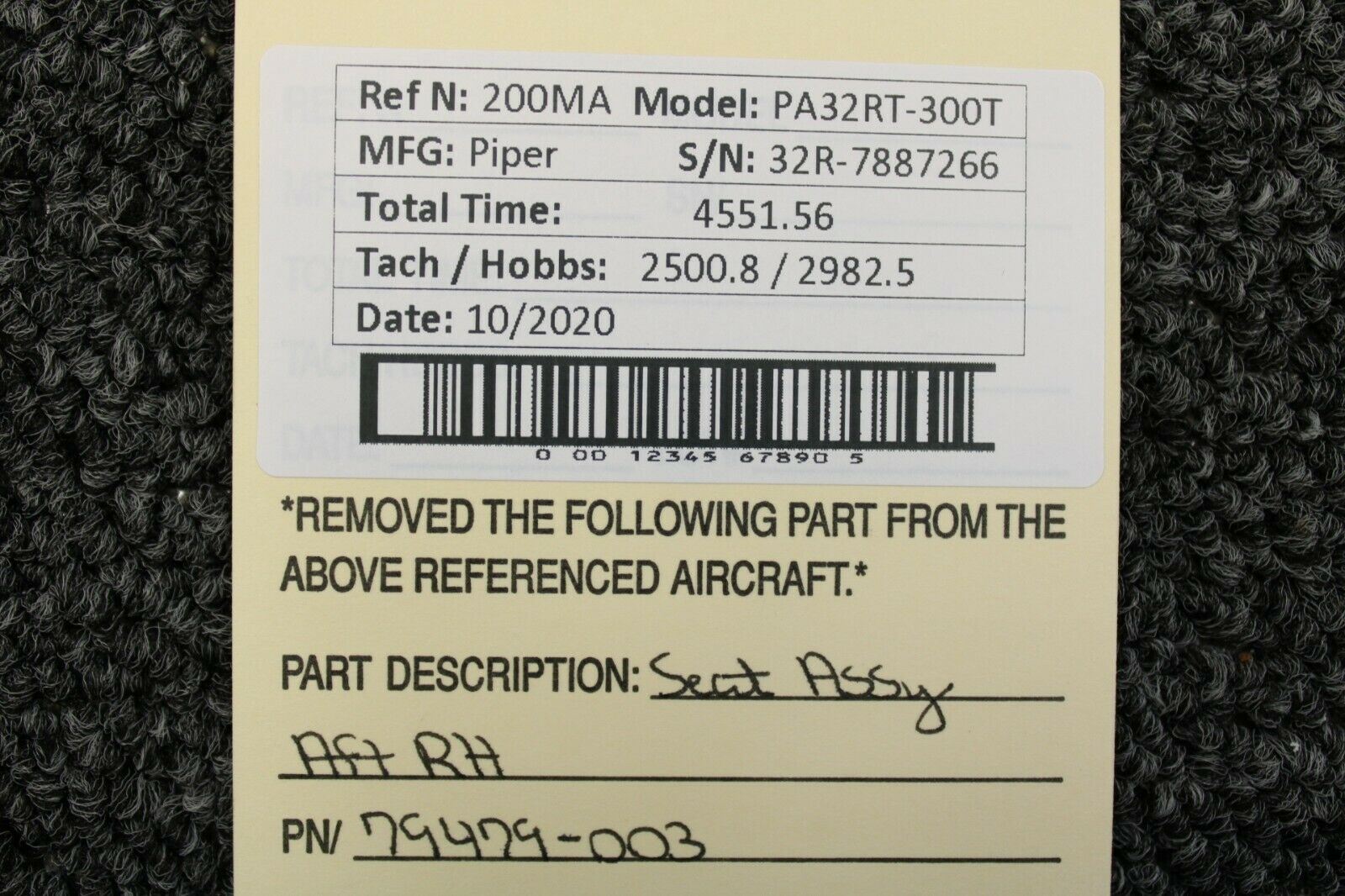 79479-003 Piper PA32RT-300T Seat Assy Aft RH (Legs: 13")