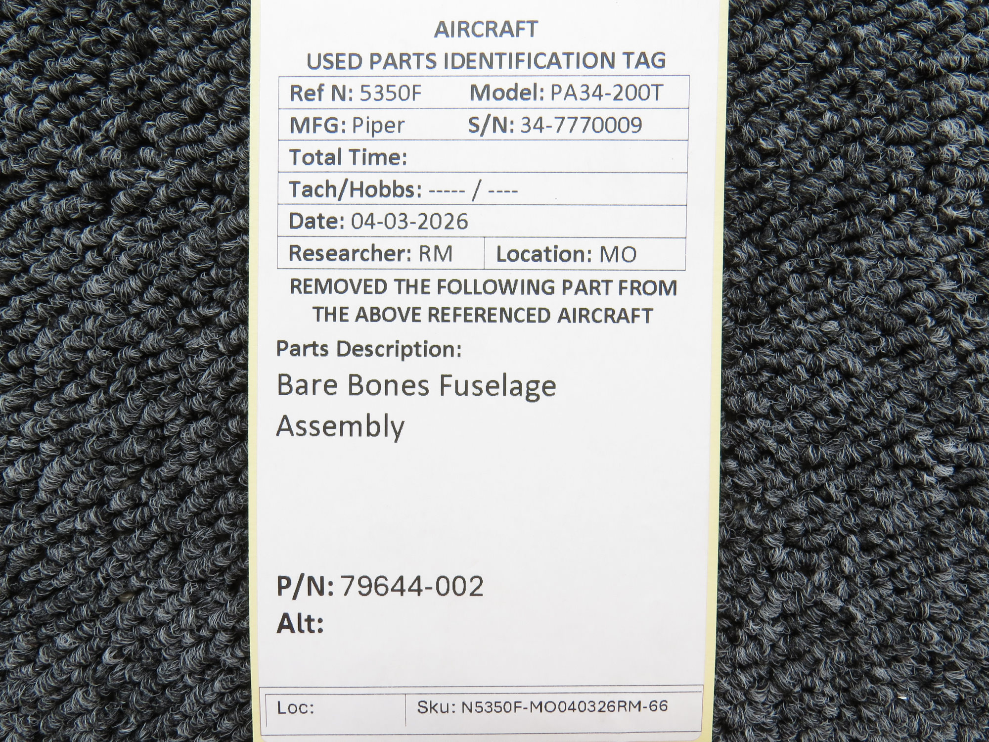 - Fuselage has been stripped and does not include interior, control components, windows/doors, etc.