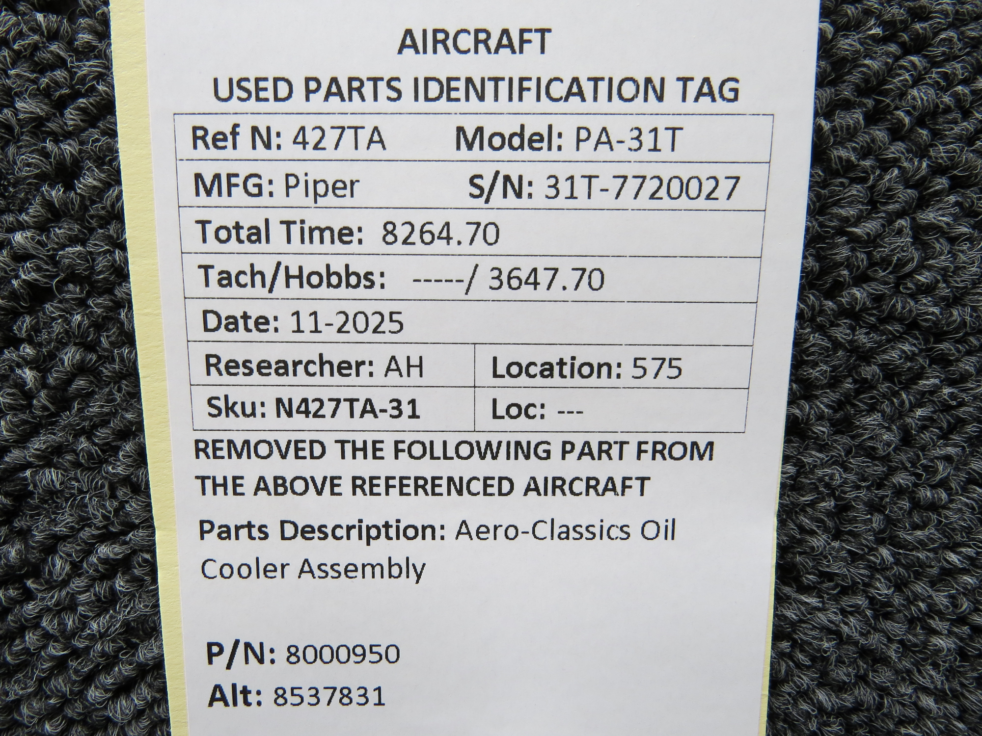Unless specifically noted, most of our used airplane parts are sold in the condition they were removed, which means you should expect the usual signs of wear and tear.