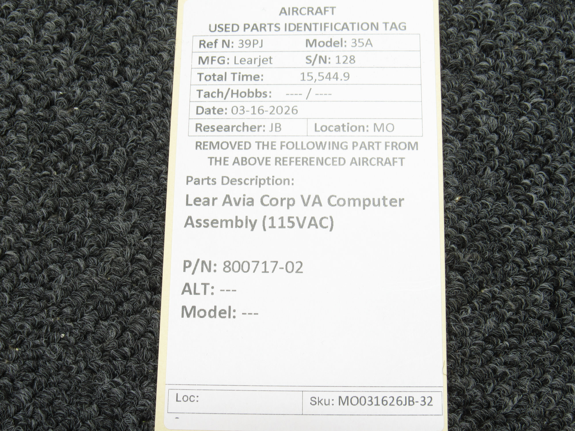 Every part is carefully inspected throughout our process and several times before it goes online. Most items are sold as-removed, just as they came off the aircraft. These parts are not functionally tested. What we do provide is clear photos, full traceability when available, pricing that reflects the as-removed condition, and a no-nonsense 90-day return window.