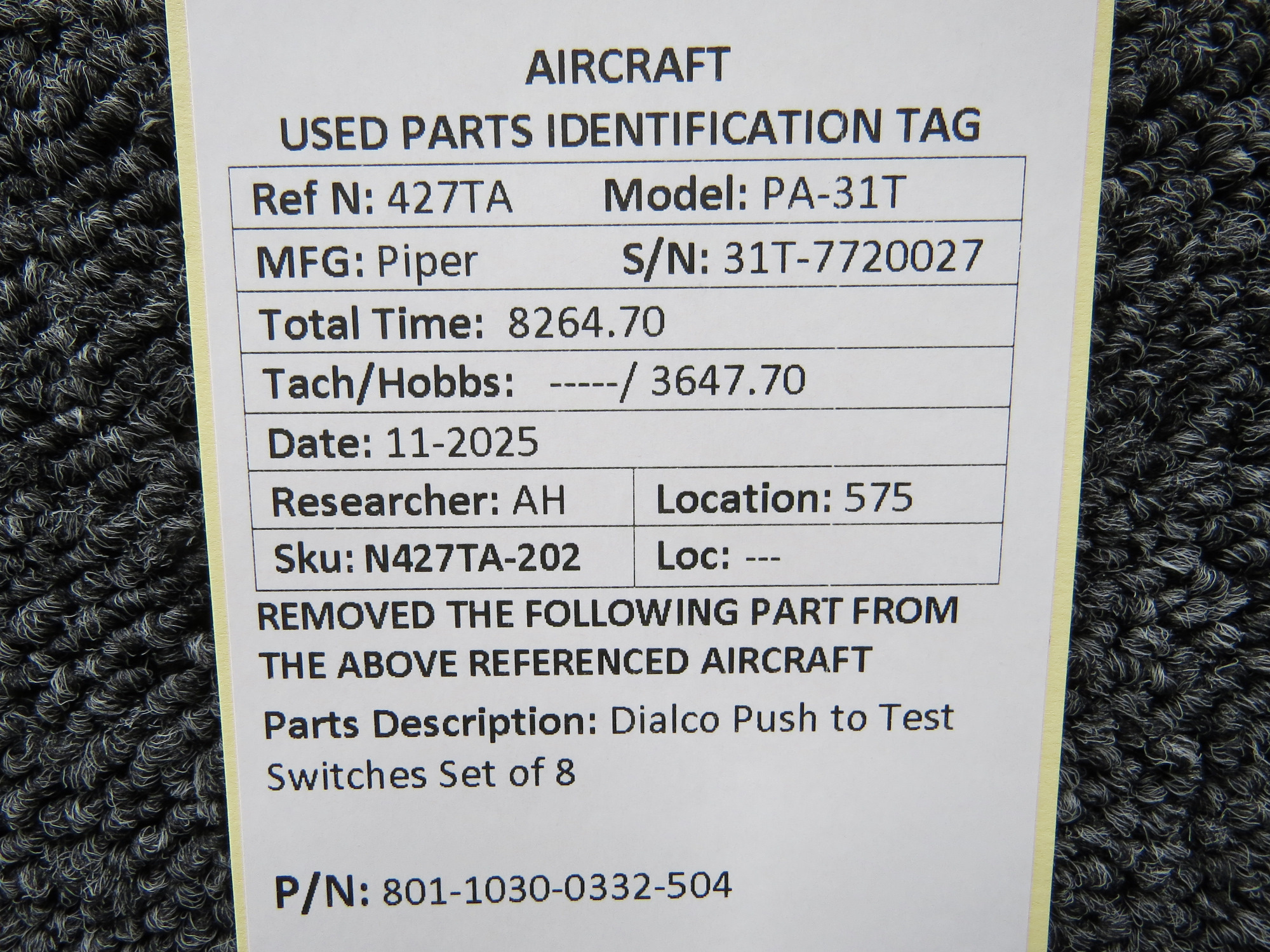 Unless specifically noted, most of our used airplane parts are sold in the condition they were removed, which means you should expect the usual signs of wear and tear.