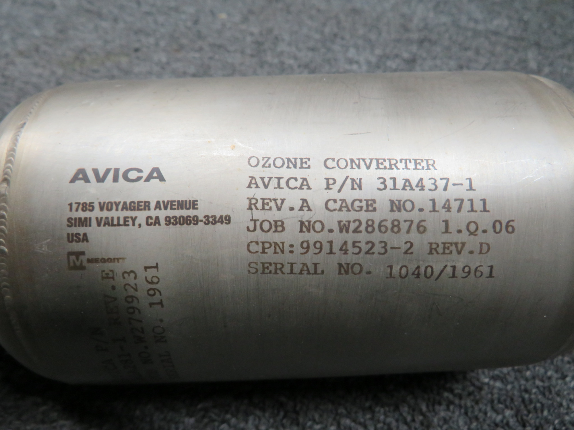 - Avica Part Numbers: 31A437-1 (Rev. A) 80A281-1 (Rev. E)