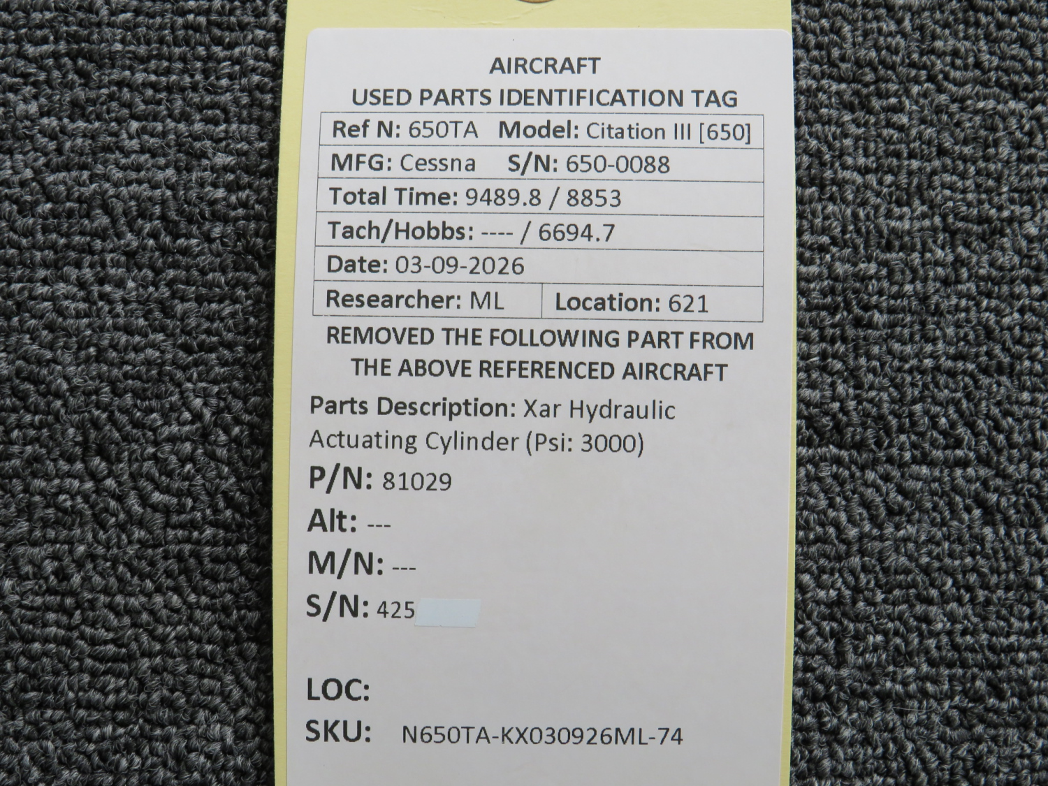 Every part is carefully inspected throughout our process and several times before it goes online. Most items are sold as-removed, just as they came off the aircraft. These parts are not functionally tested. What we do provide is clear photos, full traceability when available, pricing that reflects the as-removed condition, and a no-nonsense 90-day return window.