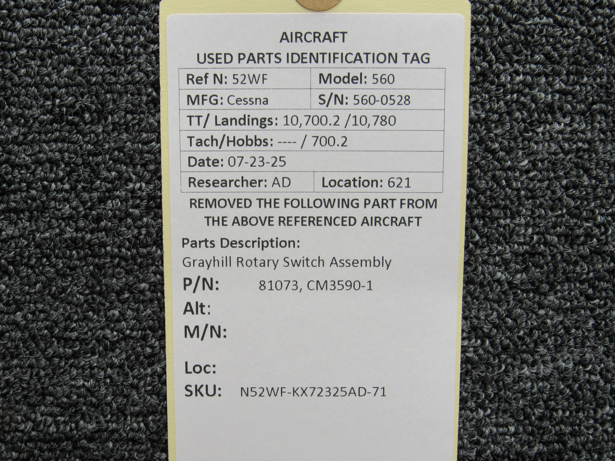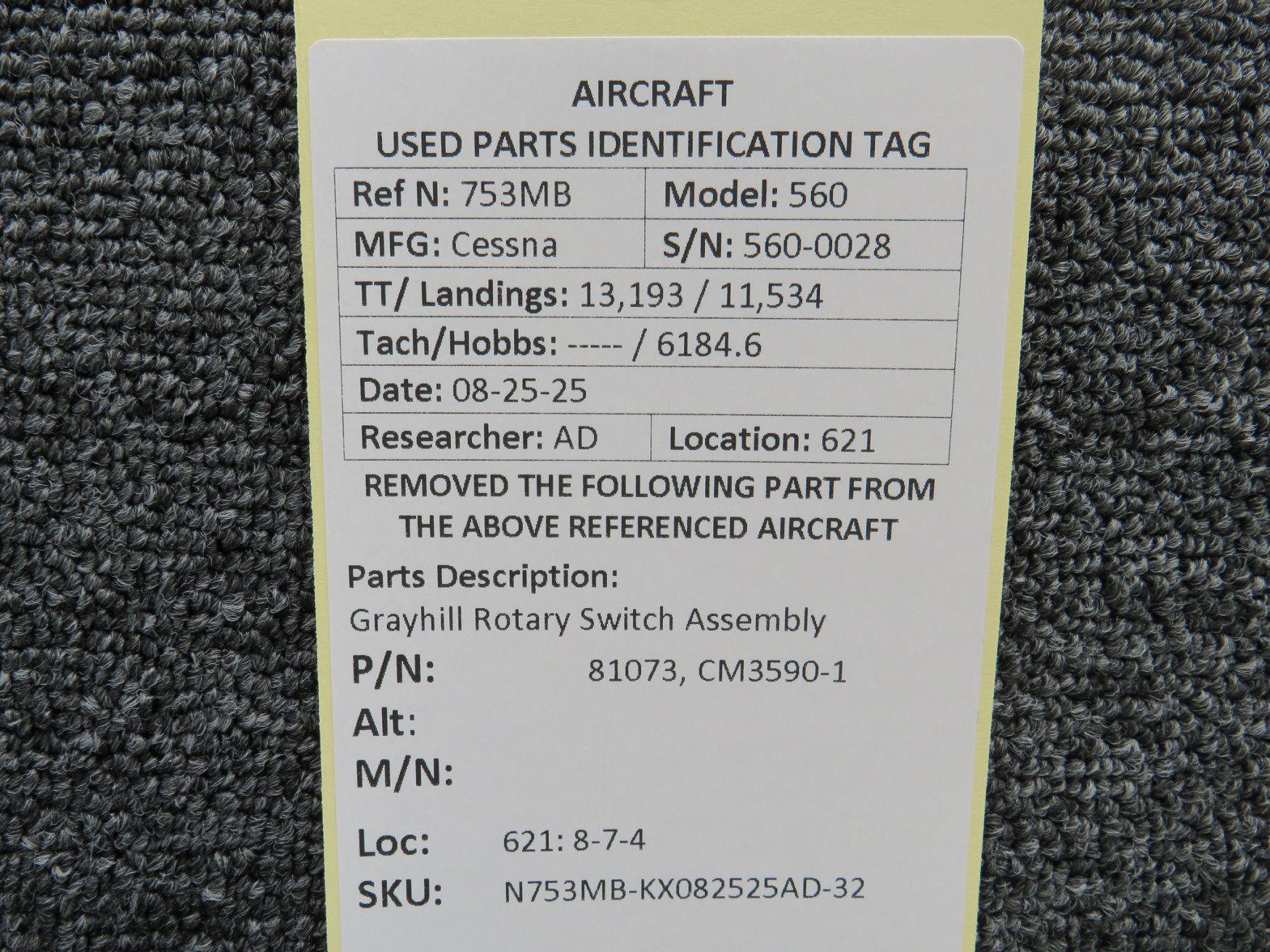 Unless specifically noted, most of our used airplane parts are sold in the condition they were removed, which means you should expect the usual signs of wear and tear.