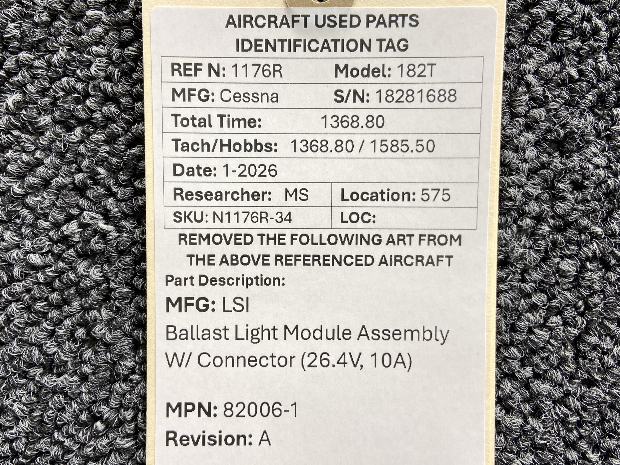Unless specifically noted, most of our used airplane parts are sold in the condition they were removed, which means you should expect the usual signs of wear and tear.