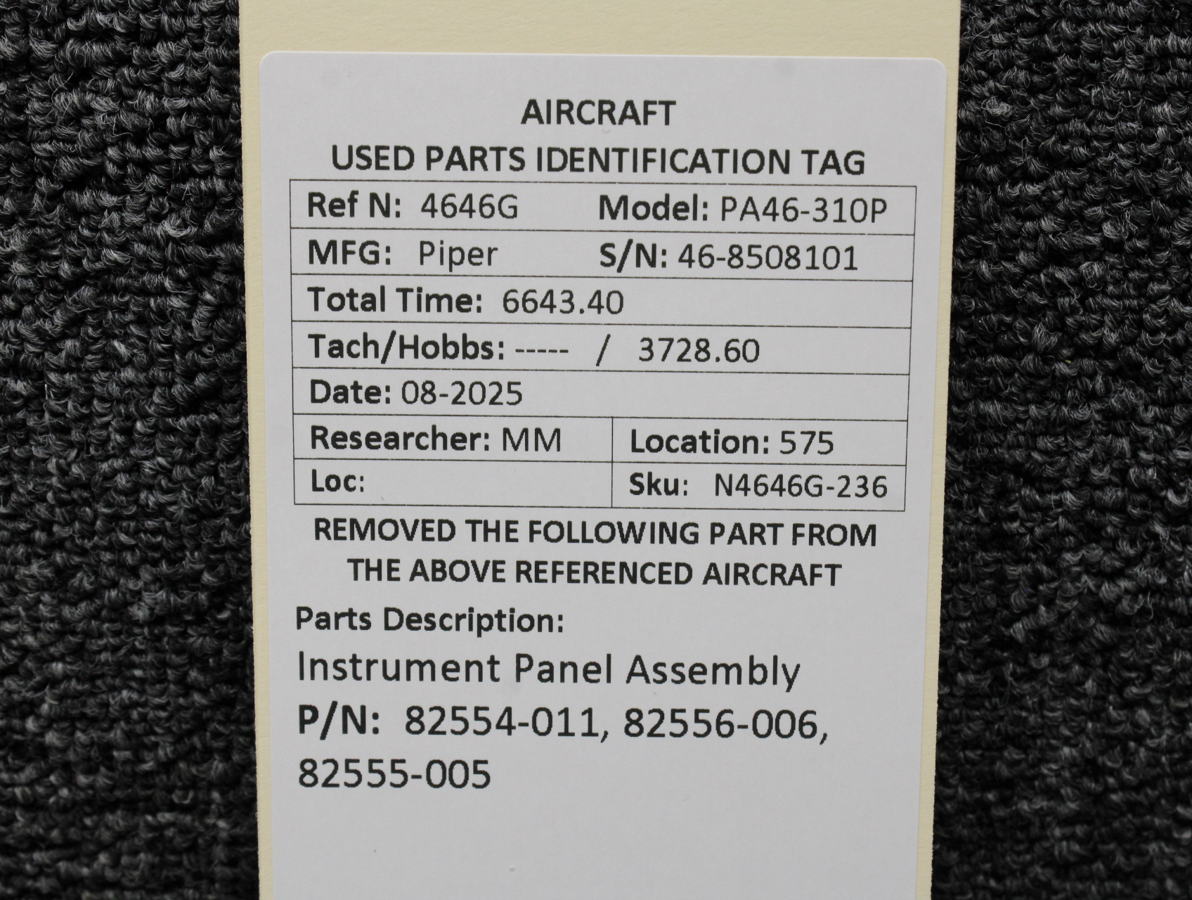 Unless specifically noted, most of our used airplane parts are sold in the condition they were removed, which means you should expect the usual signs of wear and tear.