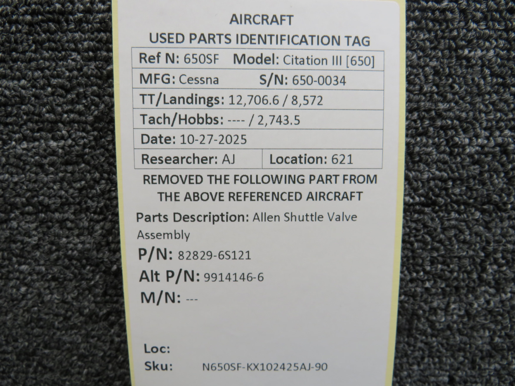 Unless specifically noted, most of our used airplane parts are sold in the condition they were removed, which means you should expect the usual signs of wear and tear.