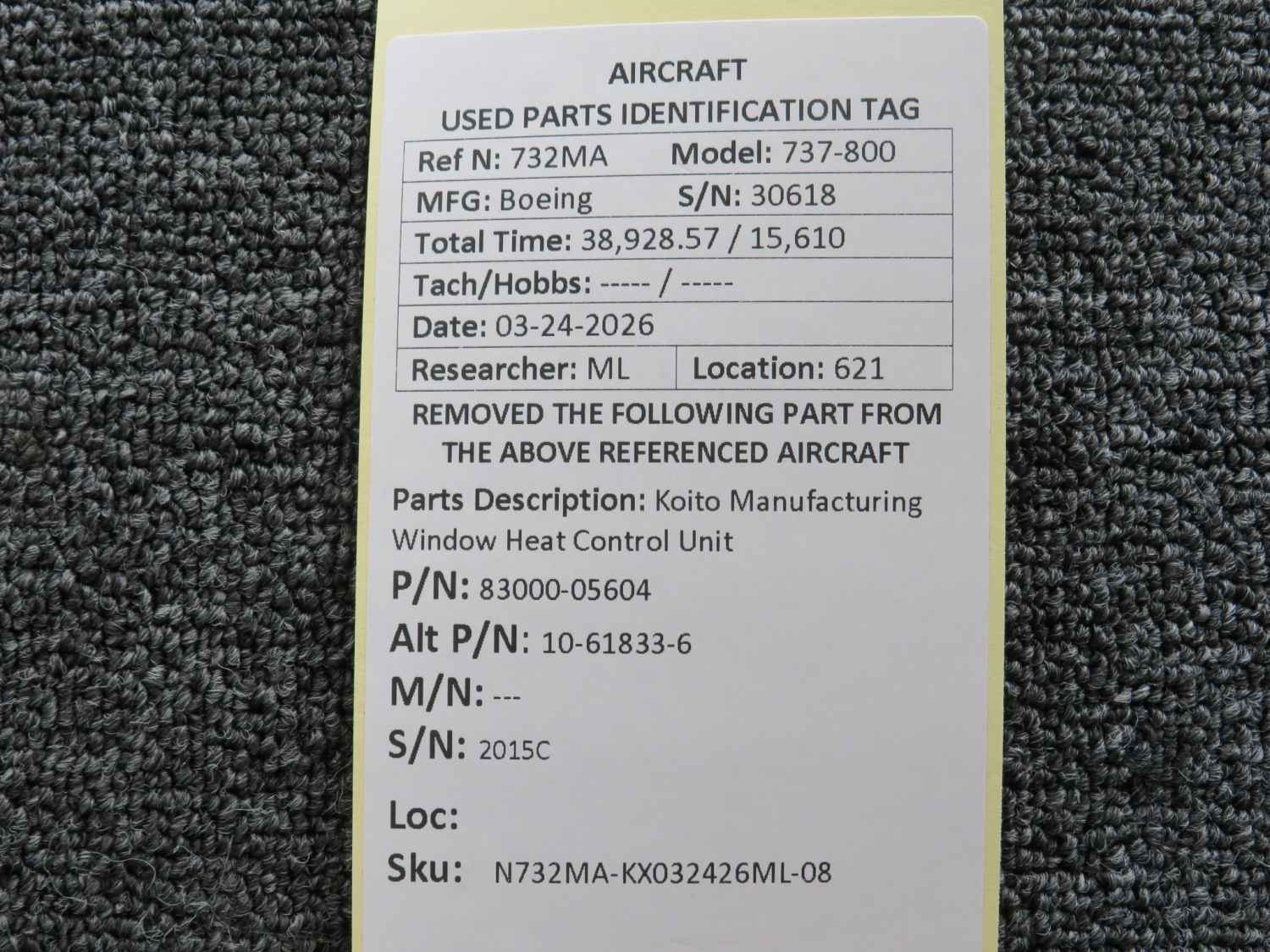 Every part is carefully inspected throughout our process and several times before it goes online. Most items are sold as-removed, just as they came off the aircraft. These parts are not functionally tested. What we do provide is clear photos, full traceability when available, pricing that reflects the as-removed condition, and a no-nonsense 90-day return window.