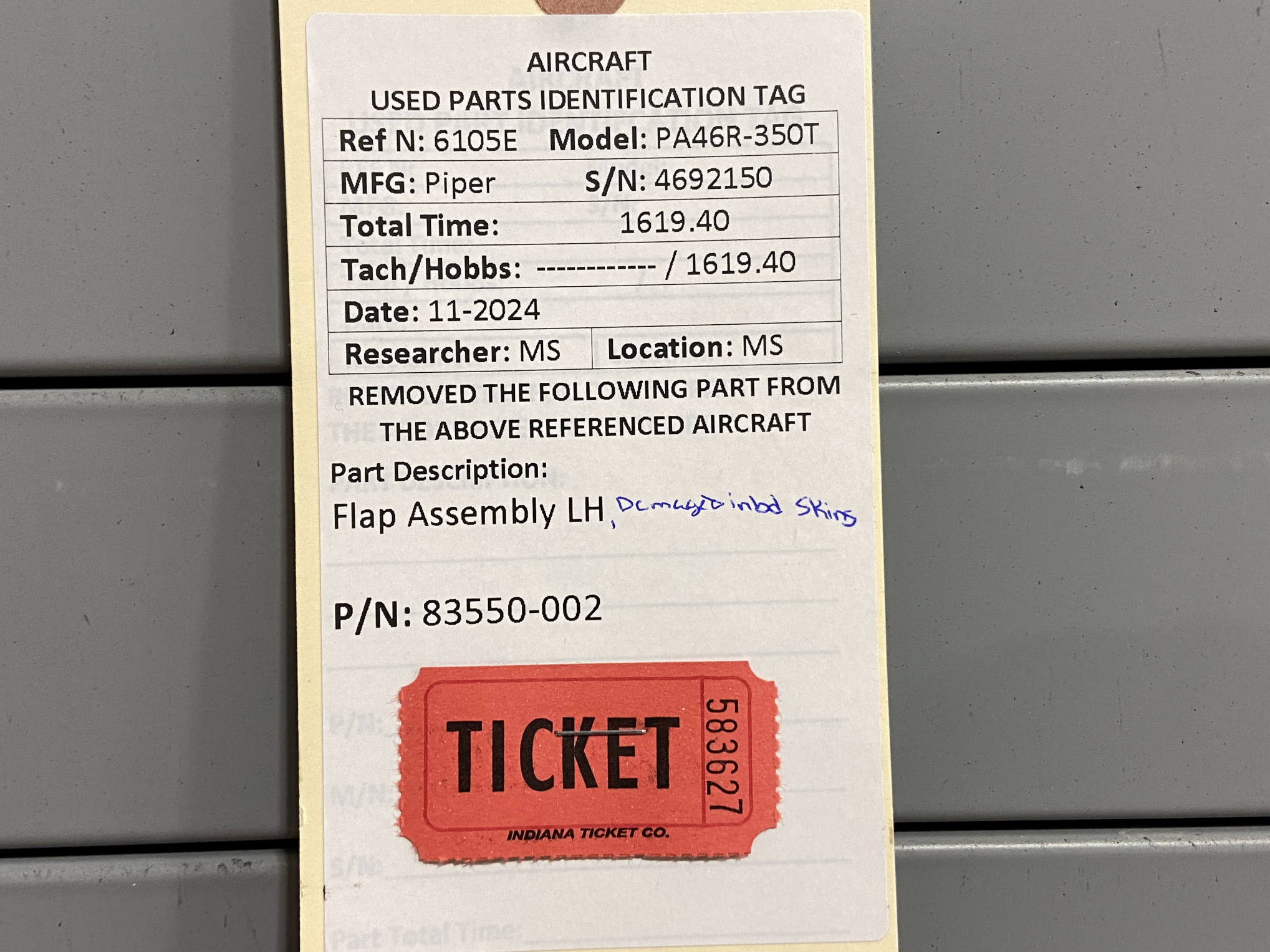 - Item has damage to inboard skins, see pictures for more detail