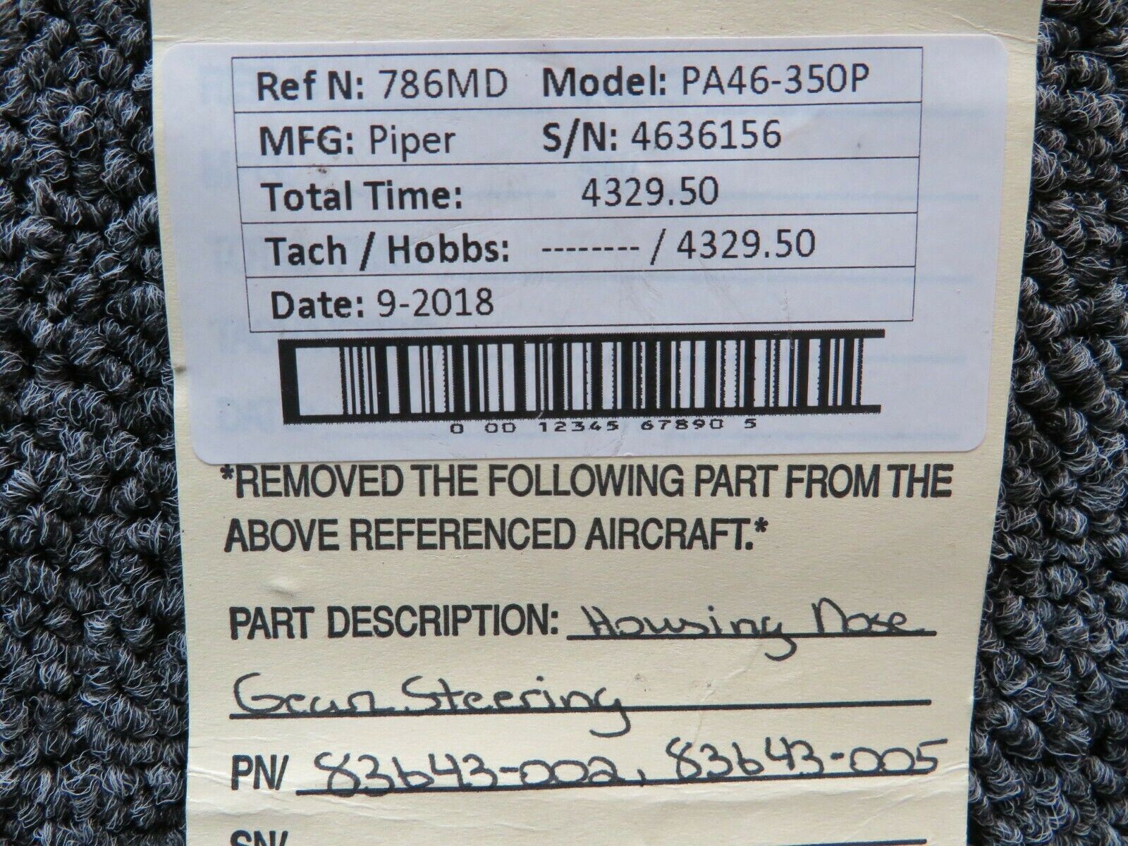 83643-002 / 83643-0005 Piper PA46-350P Nose Gear Steering Housing