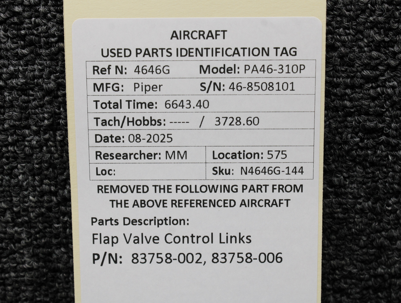 Unless specifically noted, most of our used airplane parts are sold in the condition they were removed, which means you should expect the usual signs of wear and tear.