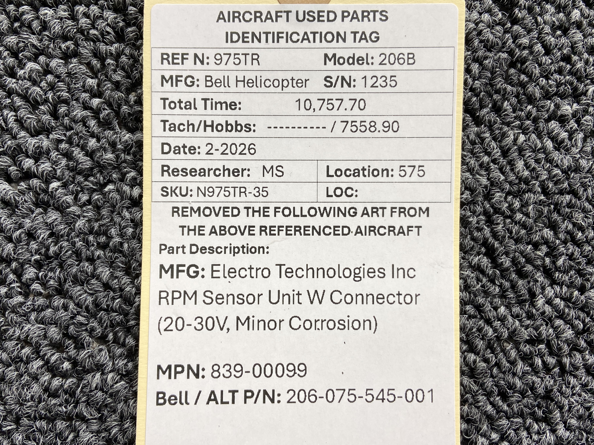 Every part is carefully inspected throughout our process and several times before it goes online. Most items are sold as-removed, just as they came off the aircraft. These parts are not functionally tested. What we do provide is clear photos, full traceability when available, pricing that reflects the as-removed condition, and a no-nonsense 90-day return window.