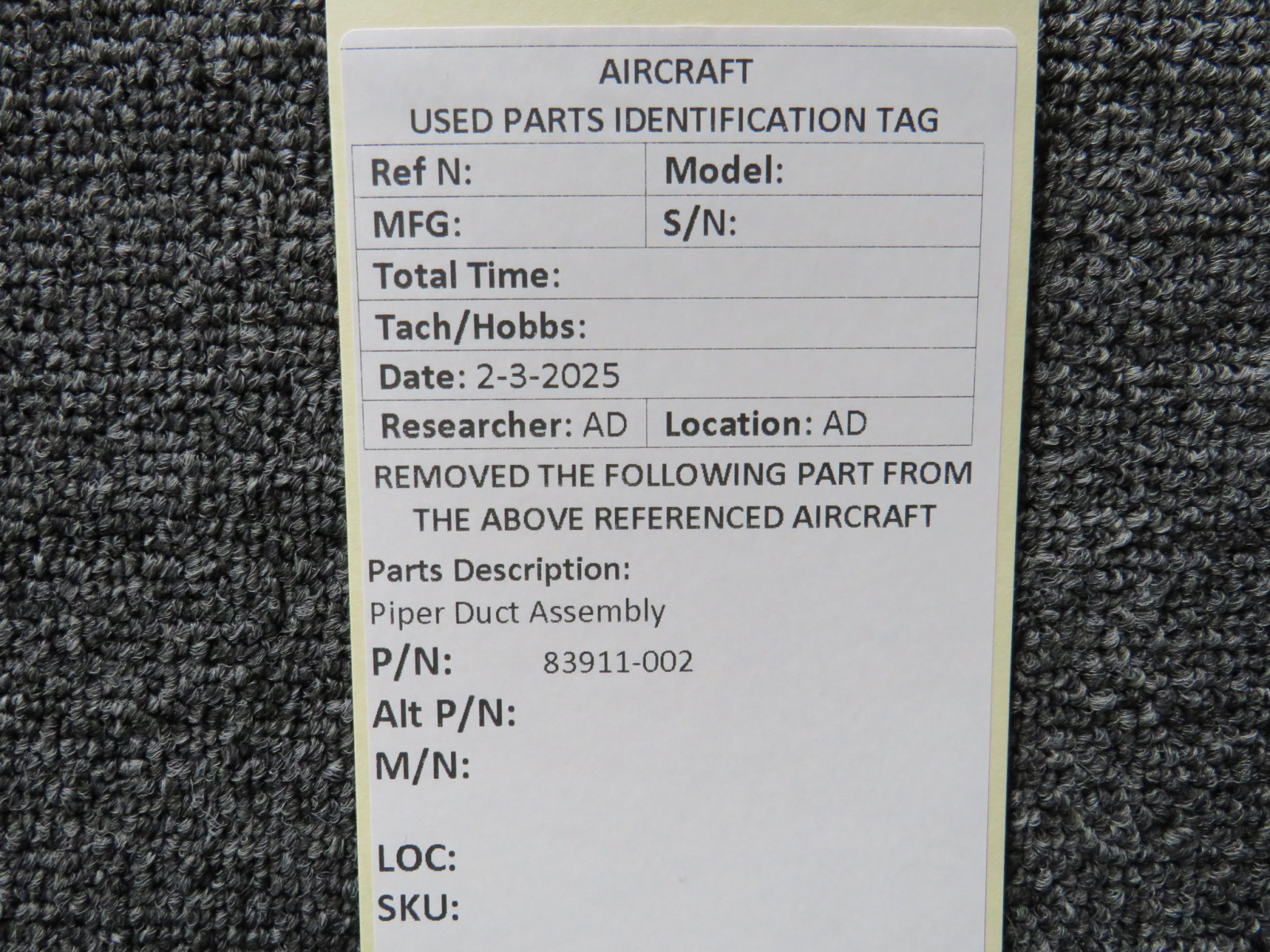 Attention International Buyers: We routinely export aircraft parts to destinations around the world. All import duties, taxes, and any other charges related to importing parts to your country are not included in the price of the item or shipping charges, these are 100% the responsibility of the buyer. Please check with your country's customs office to help determine what these additional costs will be prior to purchasing. We do not mark merchandise value below purchase value nor mark items as "gifts" as both U.S. and international law strictly prohibits this. We do not ship to forwarding shipping stations. A business or residential address is required for delivery.
