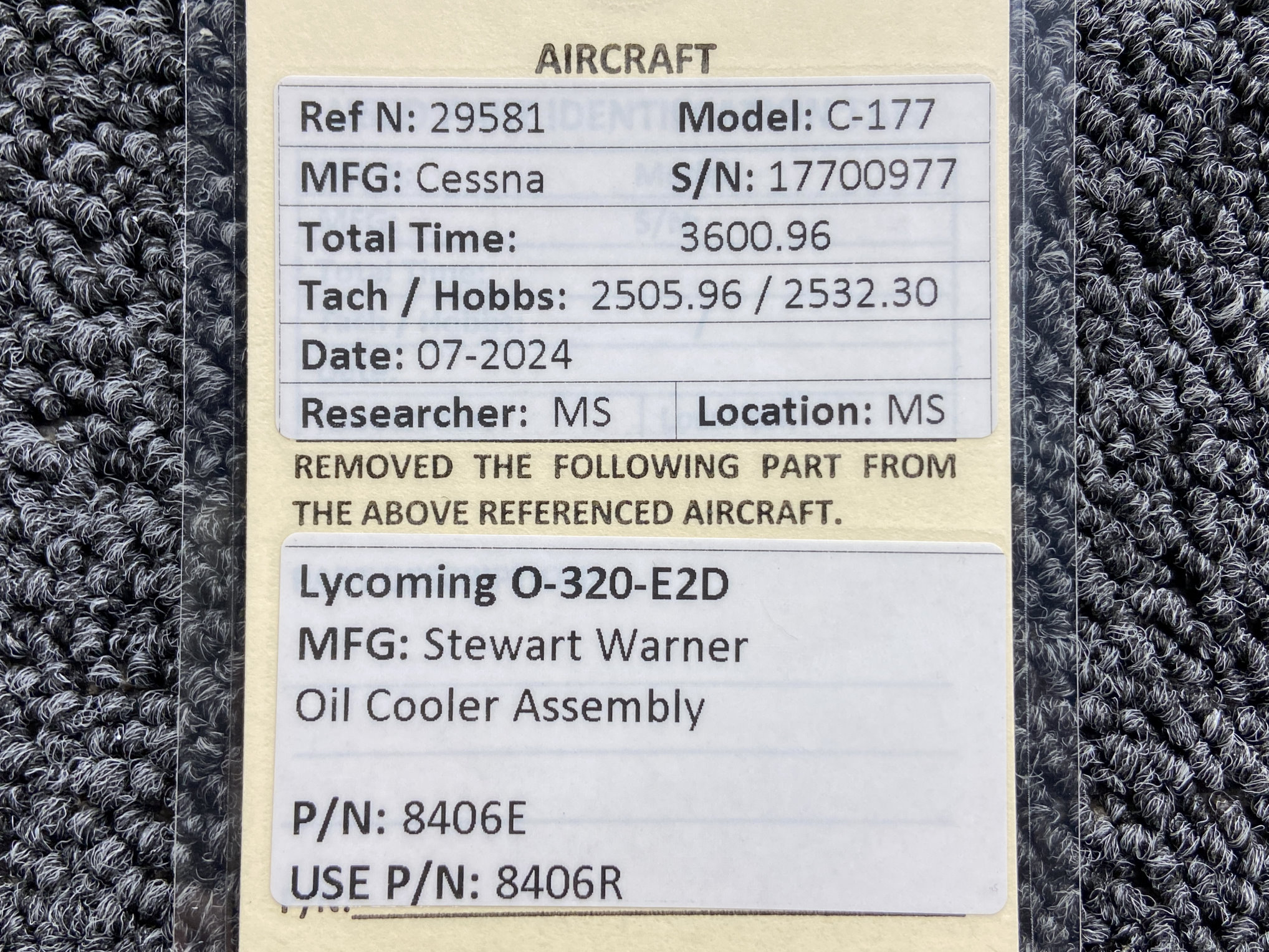 - Removed from Lycoming O-320-E2D