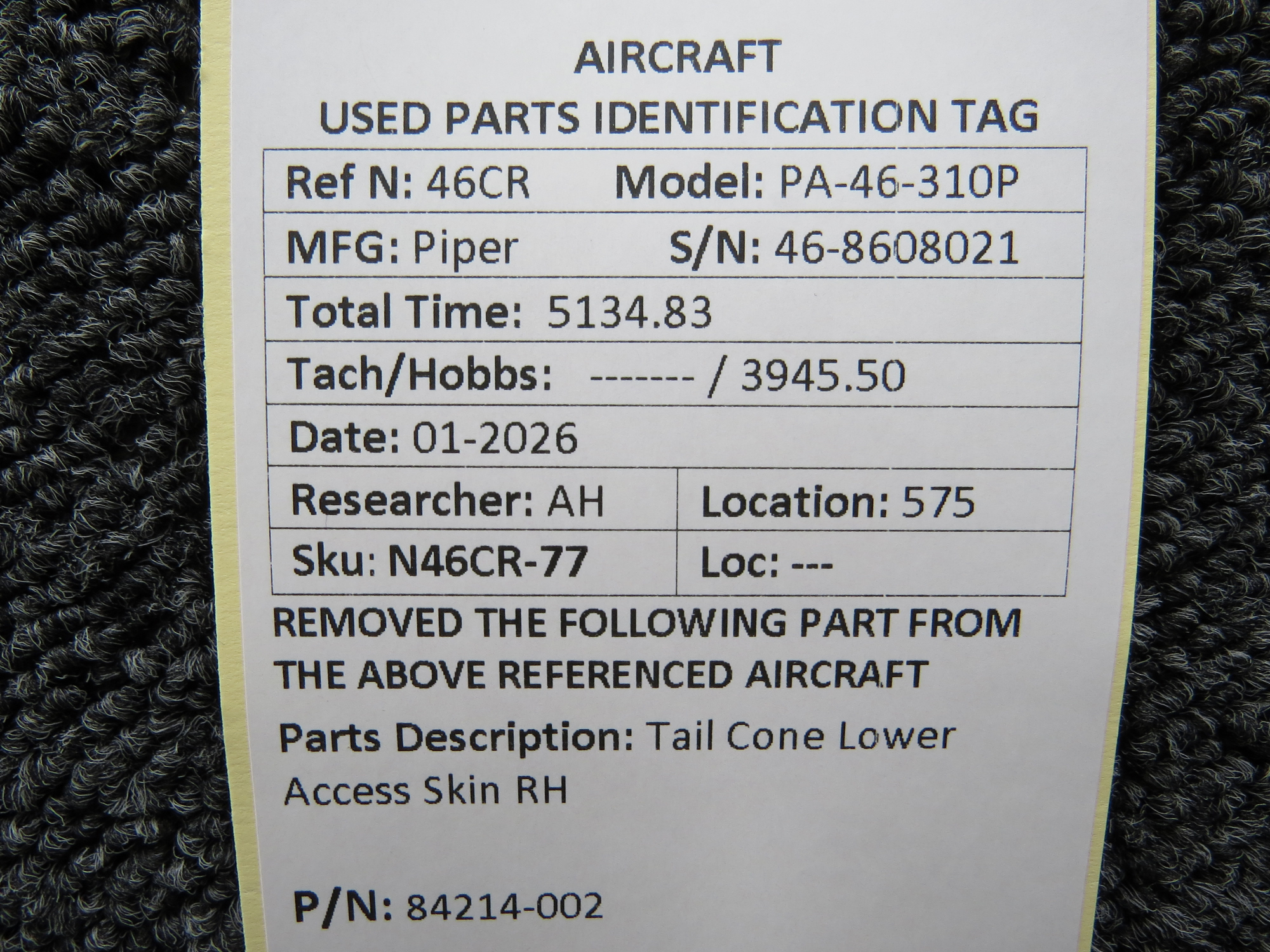 Unless specifically noted, most of our used airplane parts are sold in the condition they were removed, which means you should expect the usual signs of wear and tear.