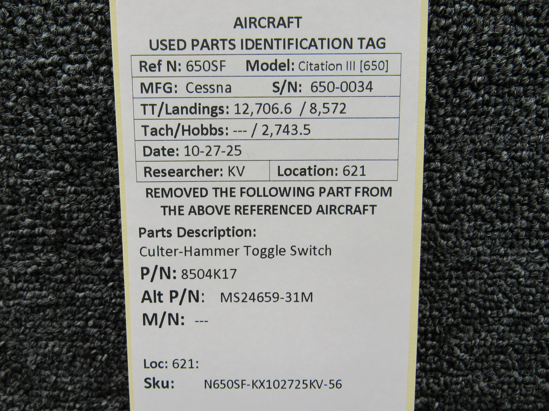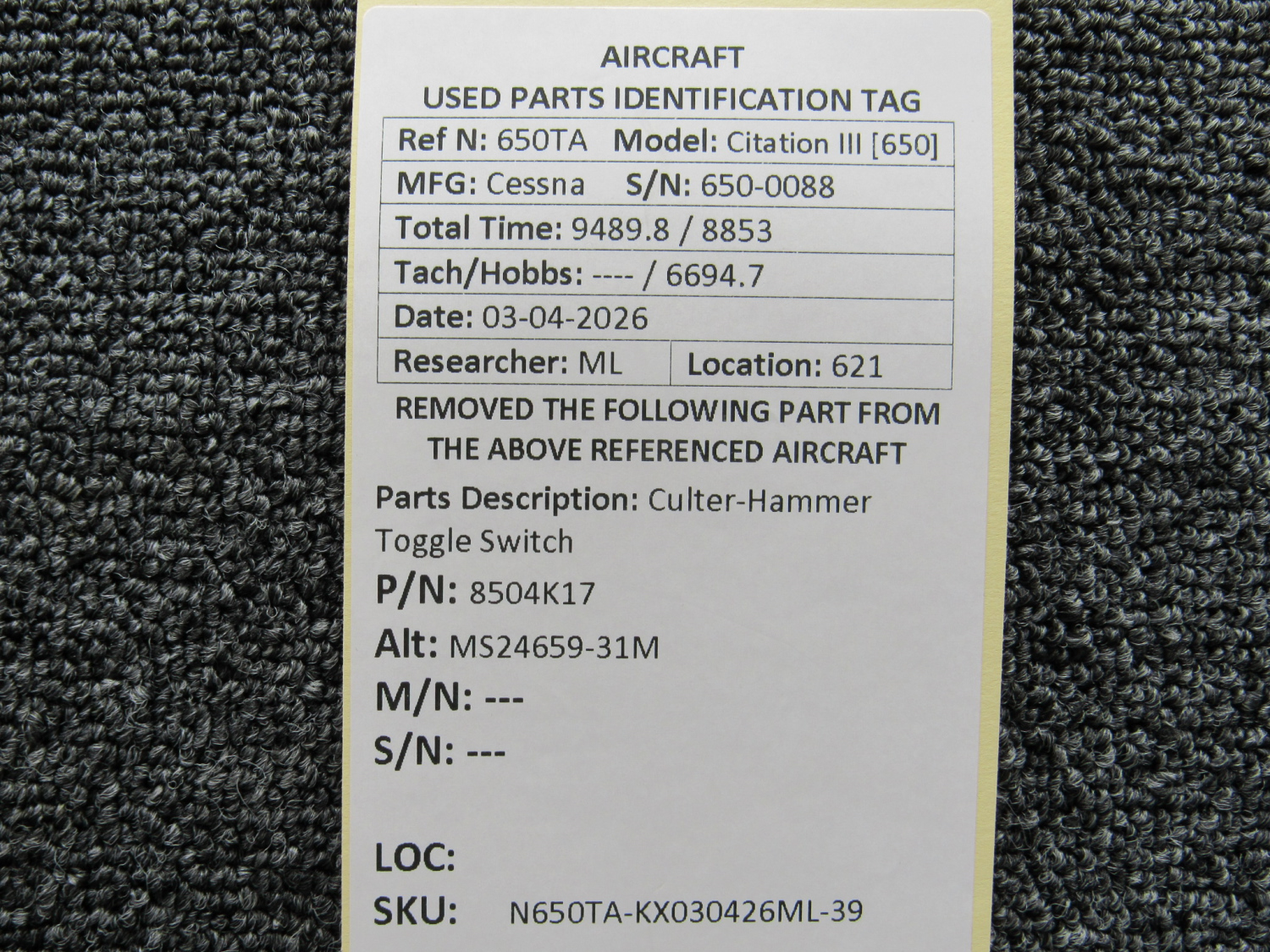Every part is carefully inspected throughout our process and several times before it goes online. Most items are sold as-removed, just as they came off the aircraft. These parts are not functionally tested. What we do provide is clear photos, full traceability when available, pricing that reflects the as-removed condition, and a no-nonsense 90-day return window.