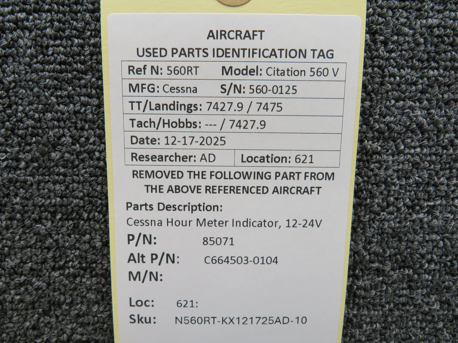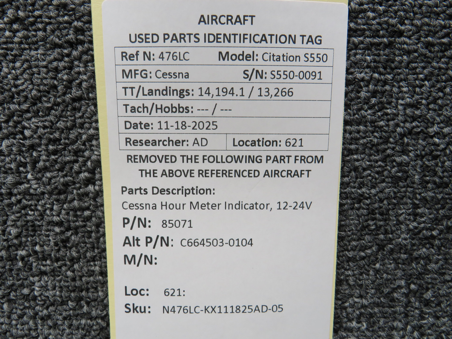 Unless specifically noted, most of our used airplane parts are sold in the condition they were removed, which means you should expect the usual signs of wear and tear.