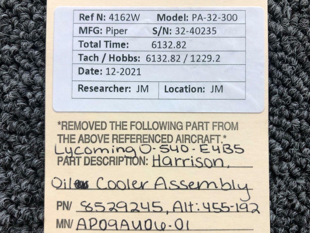 - Removed From: Lycoming O-540-E4B5