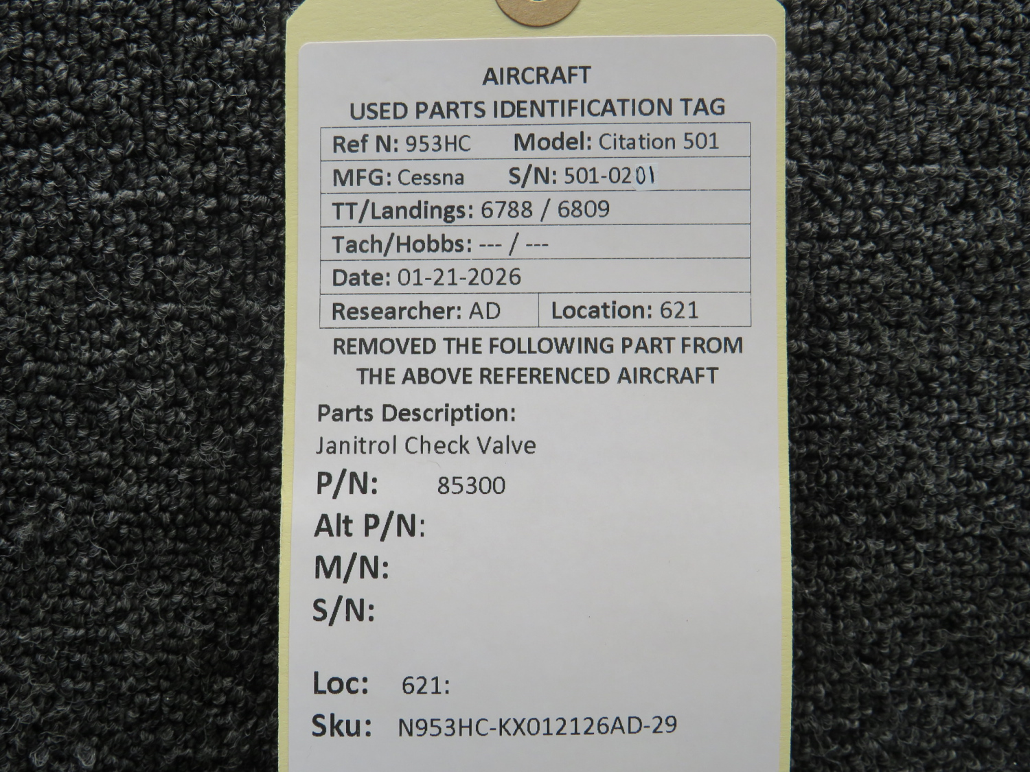 - N953HC-KX012126AD-29JL - Has traceability