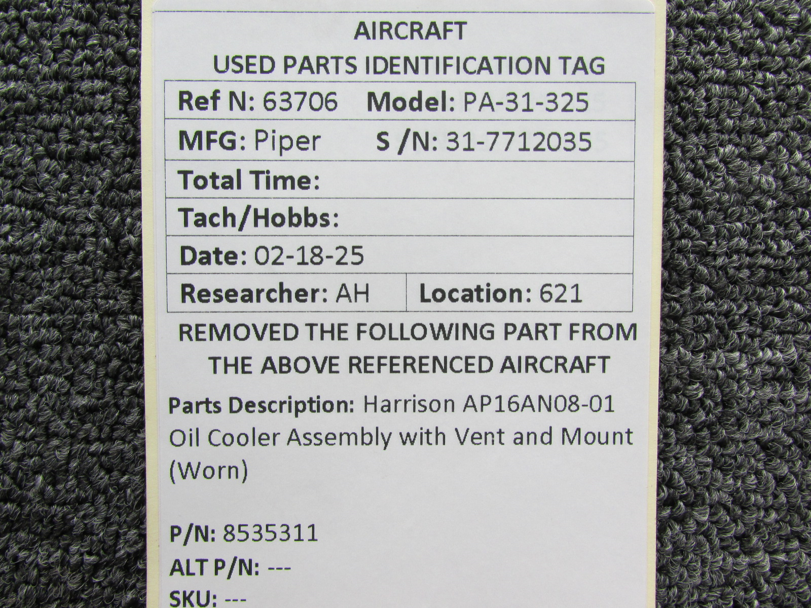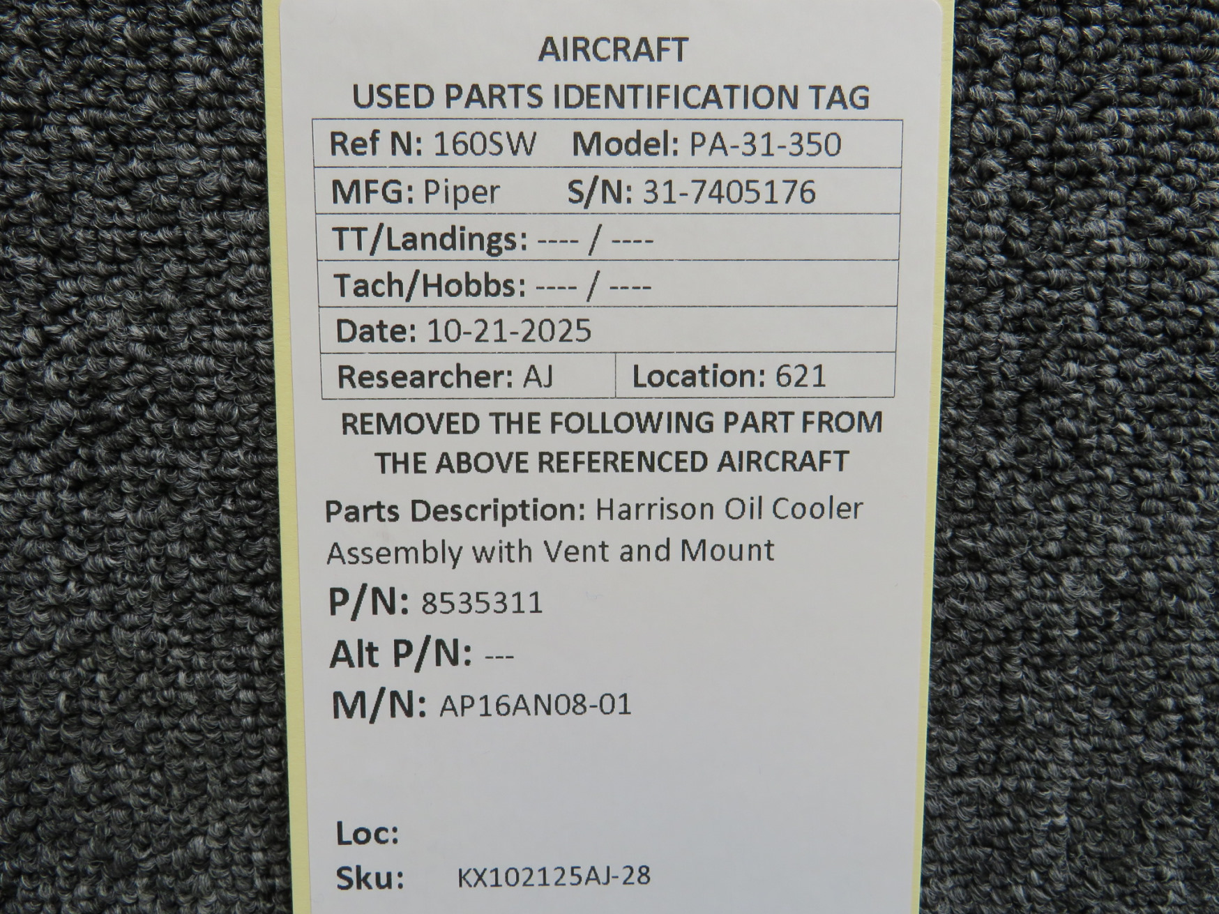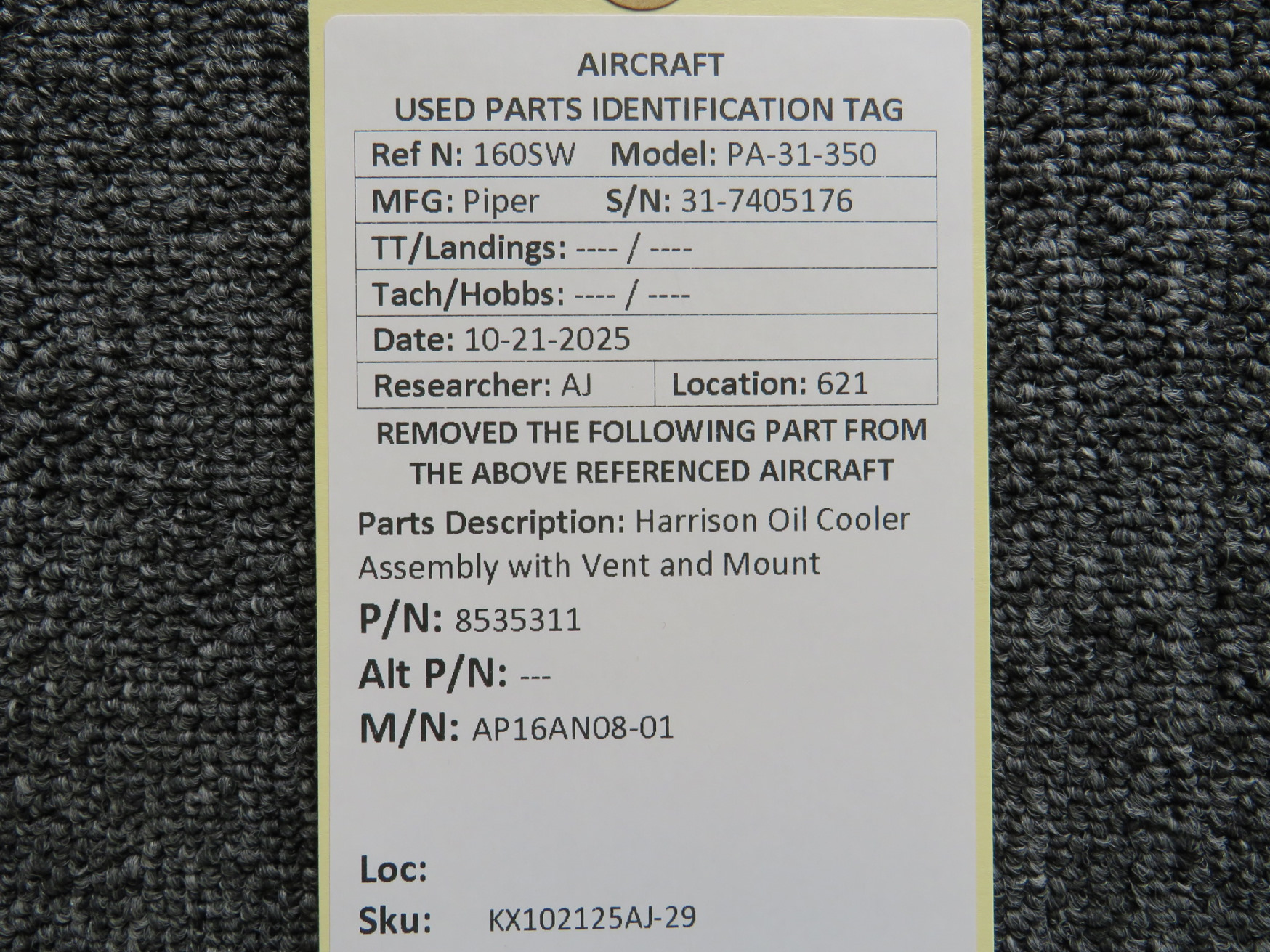Every part is carefully inspected throughout our process and several times before it goes online. Most items are sold as-removed, just as they came off the aircraft. These parts are not functionally tested. What we do provide is clear photos, full traceability when available, pricing that reflects the as-removed condition, and a no-nonsense 90-day return window.