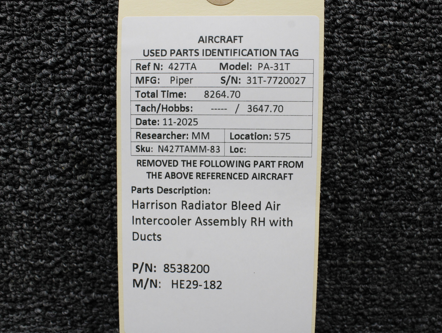Every part is carefully inspected throughout our process and several times before it goes online. Most items are sold as-removed, just as they came off the aircraft. These parts are not functionally tested. What we do provide is clear photos, full traceability when available, pricing that reflects the as-removed condition, and a no-nonsense 90-day return window.