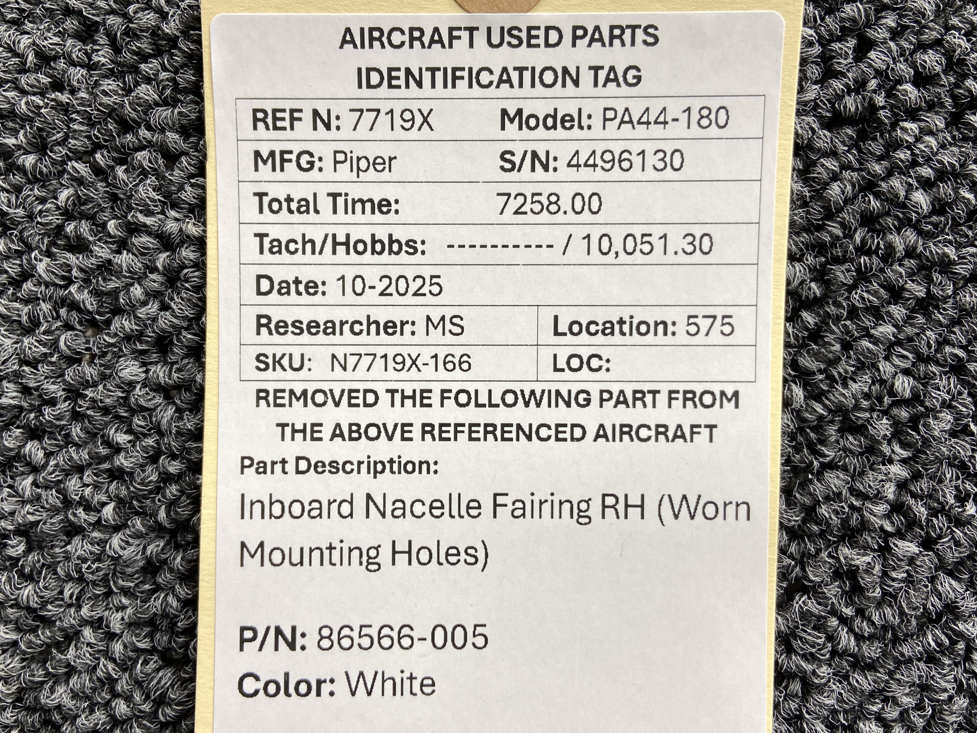 Unless specifically noted, most of our used airplane parts are sold in the condition they were removed, which means you should expect the usual signs of wear and tear.