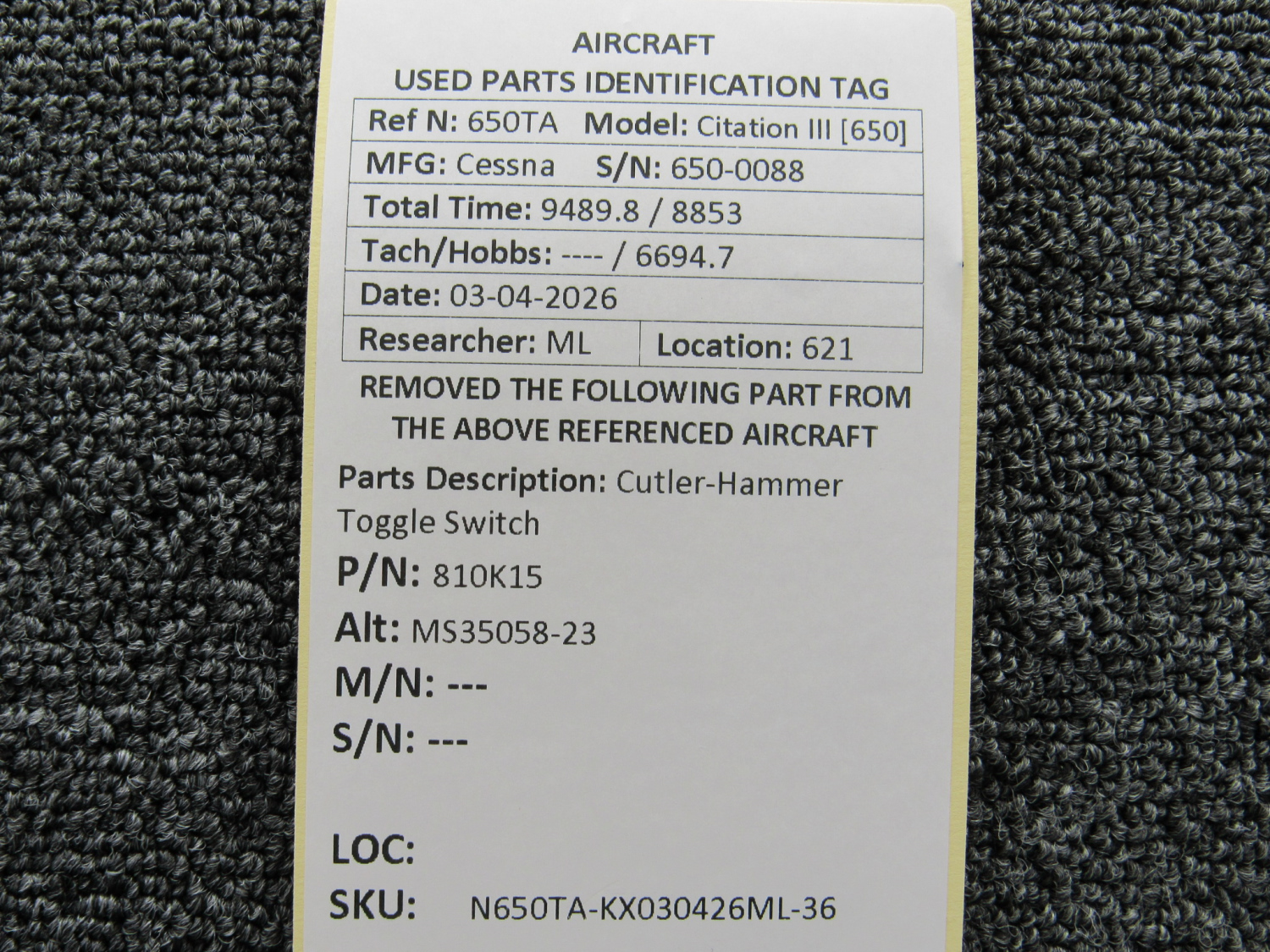 Every part is carefully inspected throughout our process and several times before it goes online. Most items are sold as-removed, just as they came off the aircraft. These parts are not functionally tested. What we do provide is clear photos, full traceability when available, pricing that reflects the as-removed condition, and a no-nonsense 90-day return window.