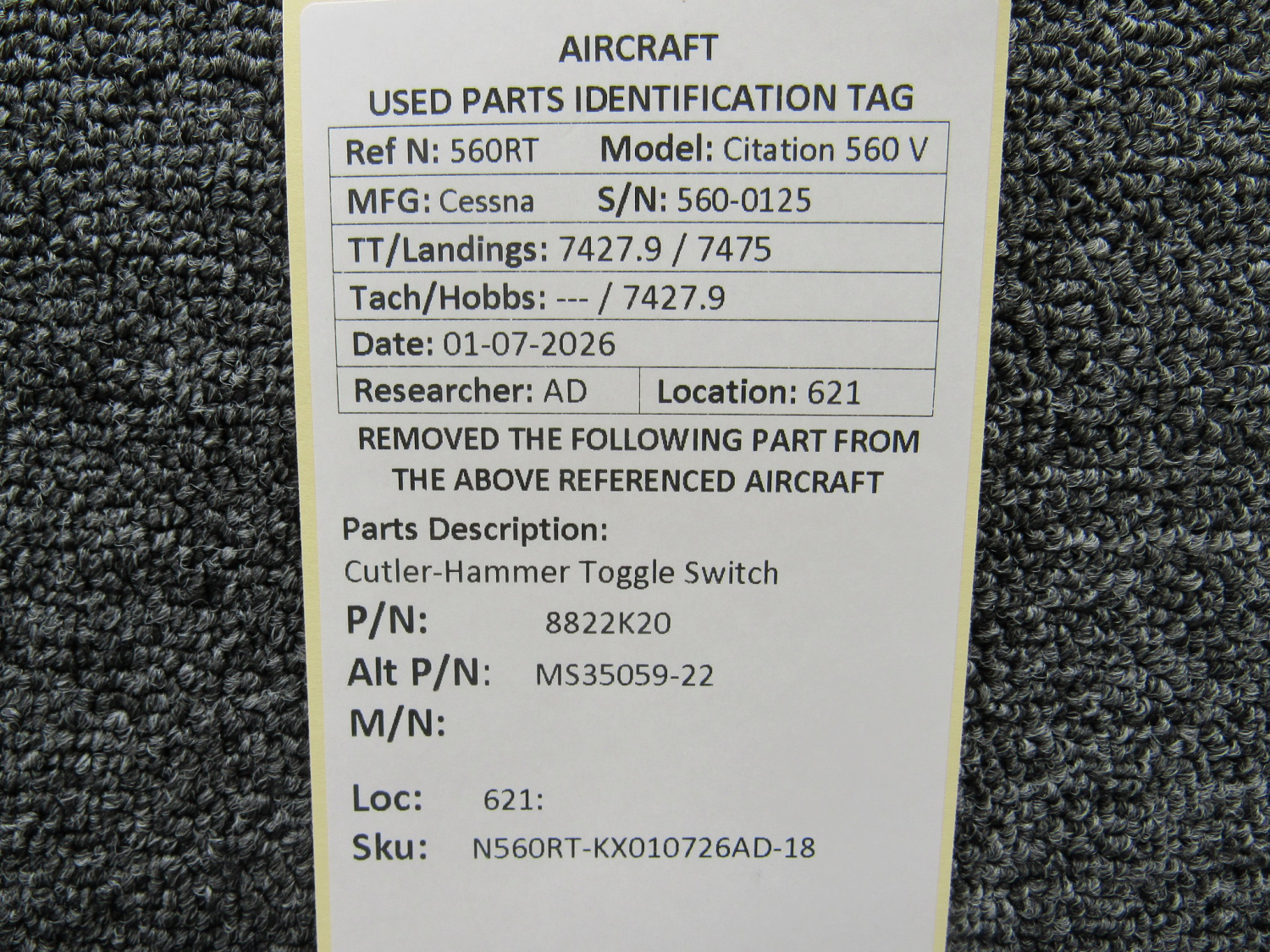 Unless specifically noted, most of our used airplane parts are sold in the condition they were removed, which means you should expect the usual signs of wear and tear.