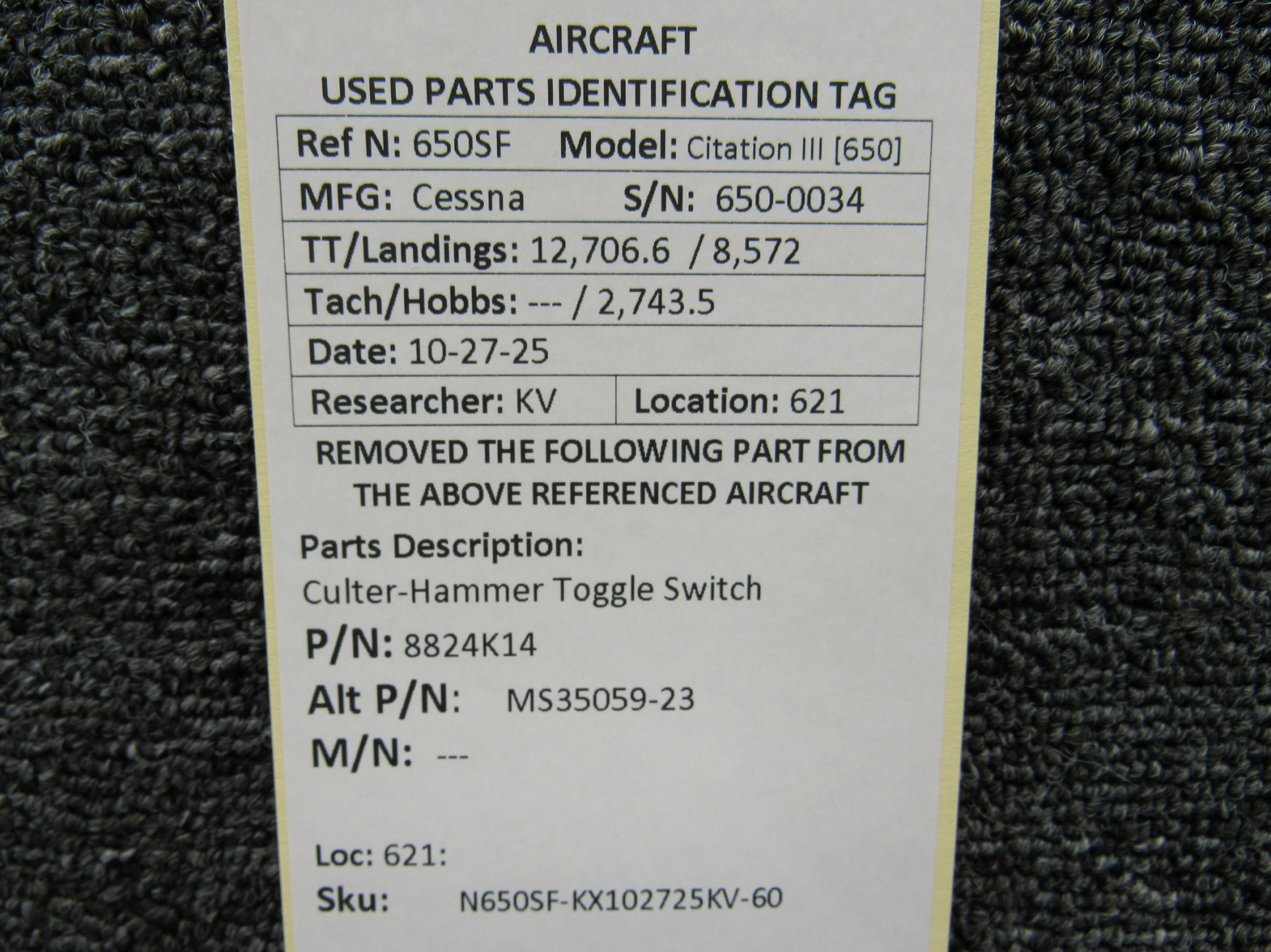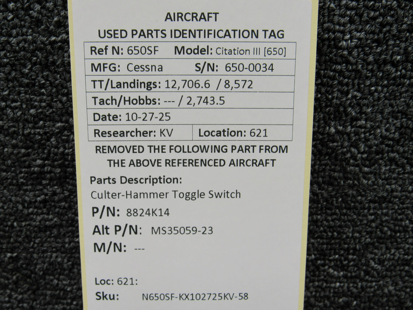Every part is carefully inspected throughout our process and several times before it goes online. Most items are sold as-removed, just as they came off the aircraft. These parts are not functionally tested. What we do provide is clear photos, full traceability when available, pricing that reflects the as-removed condition, and a no-nonsense 90-day return window.