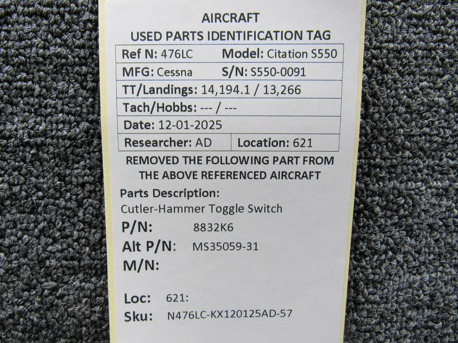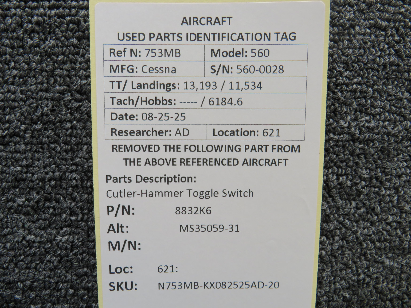 Unless specifically noted, most of our used airplane parts are sold in the condition they were removed, which means you should expect the usual signs of wear and tear.