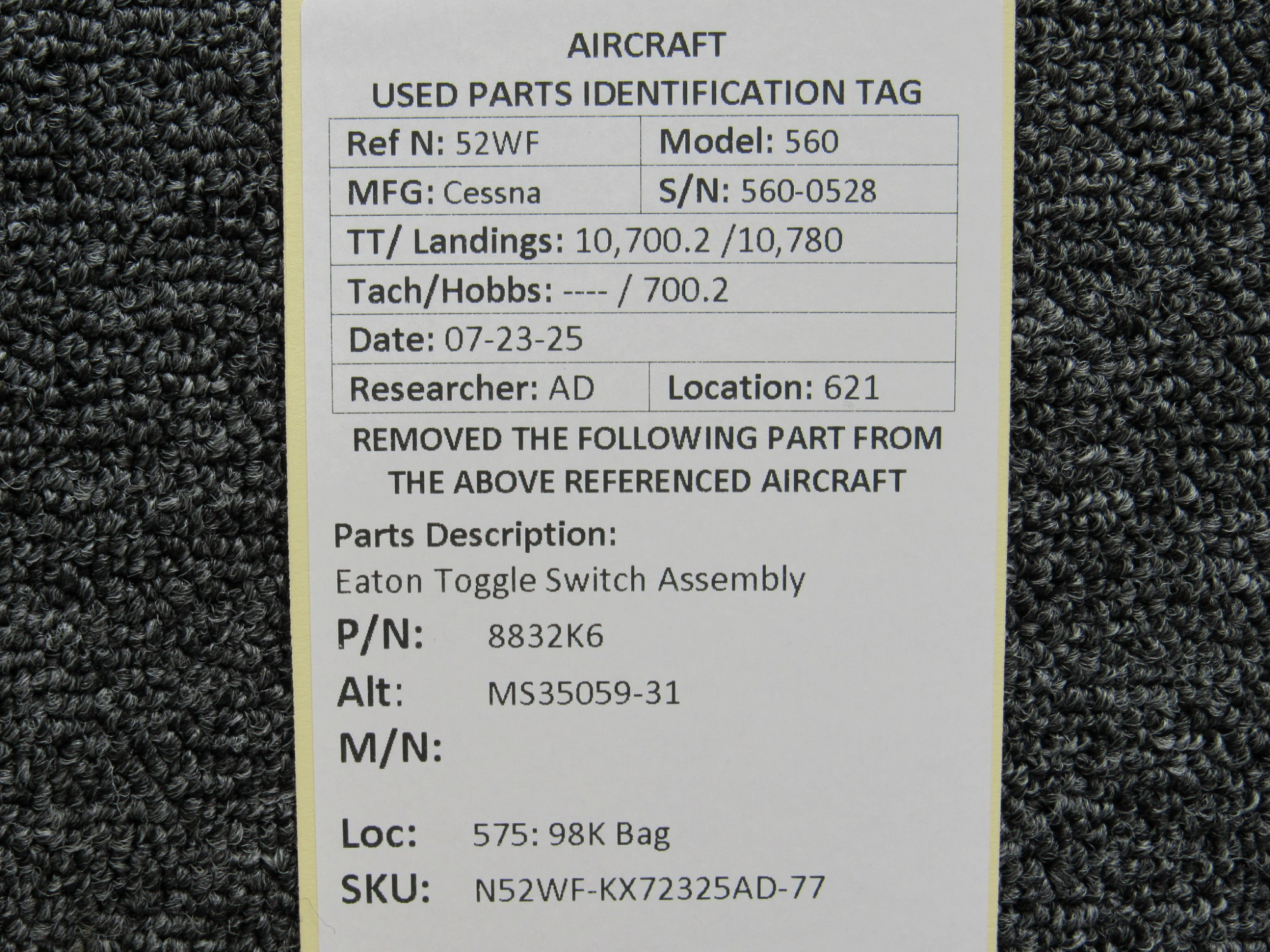 Part removed from aircraft in its original, unaltered state. Most of the inventory available from BAS Part Sales is in As-Removed condition. We removed it from the aircraft in working condition and expect it to pass inspection. As-Removed items come with our 90-day Money-Back Guarantee. Read More