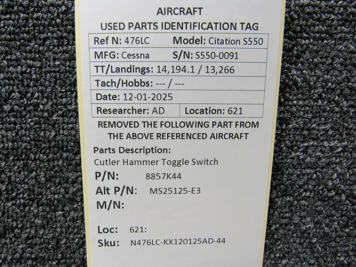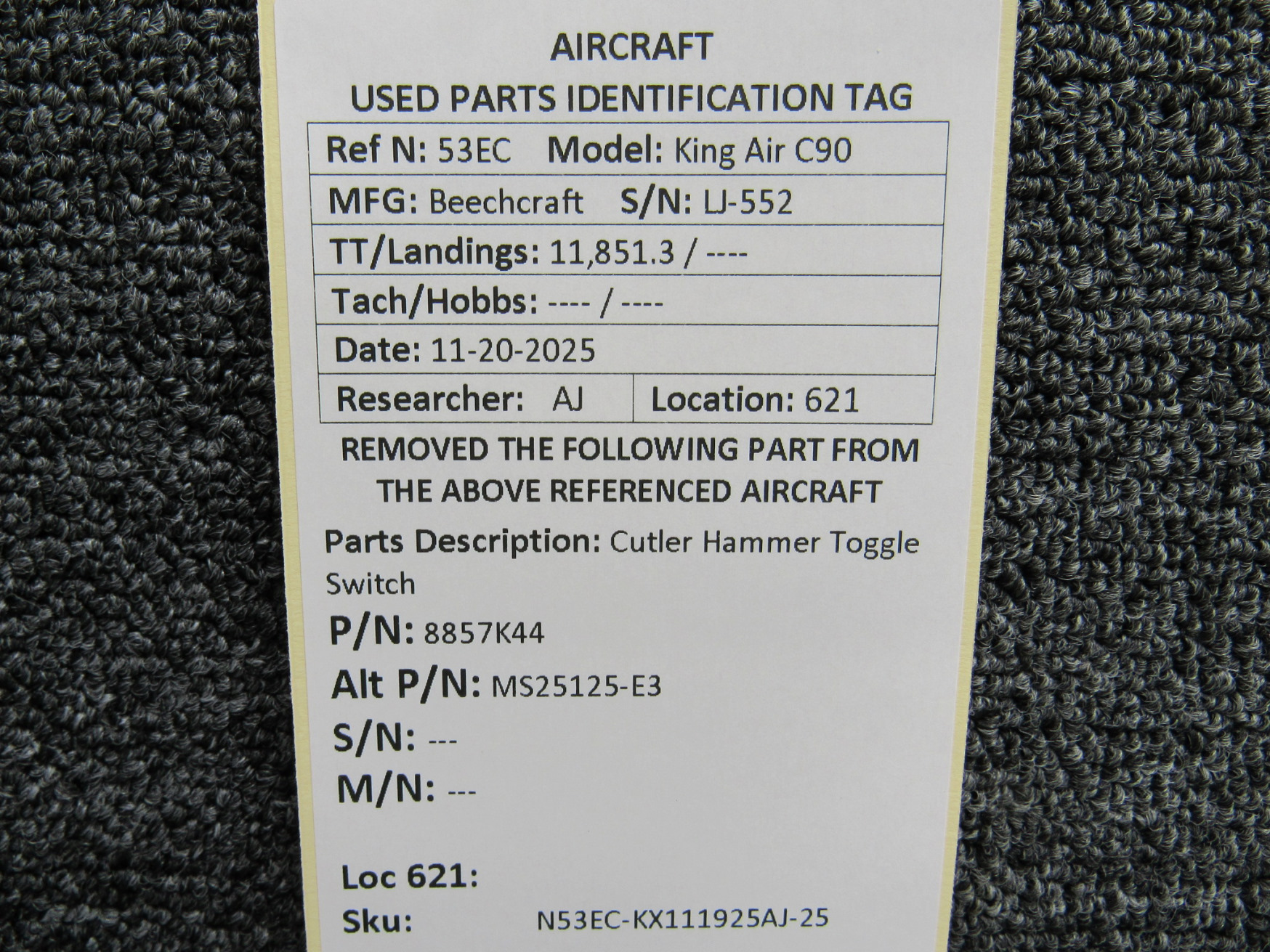 Unless specifically noted, most of our used airplane parts are sold in the condition they were removed, which means you should expect the usual signs of wear and tear.