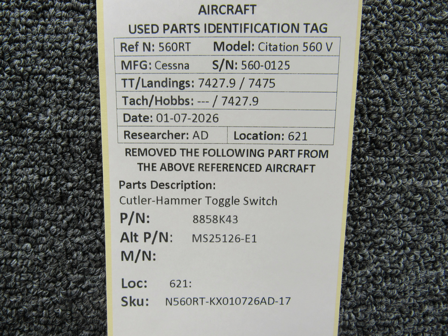 Unless specifically noted, most of our used airplane parts are sold in the condition they were removed, which means you should expect the usual signs of wear and tear.