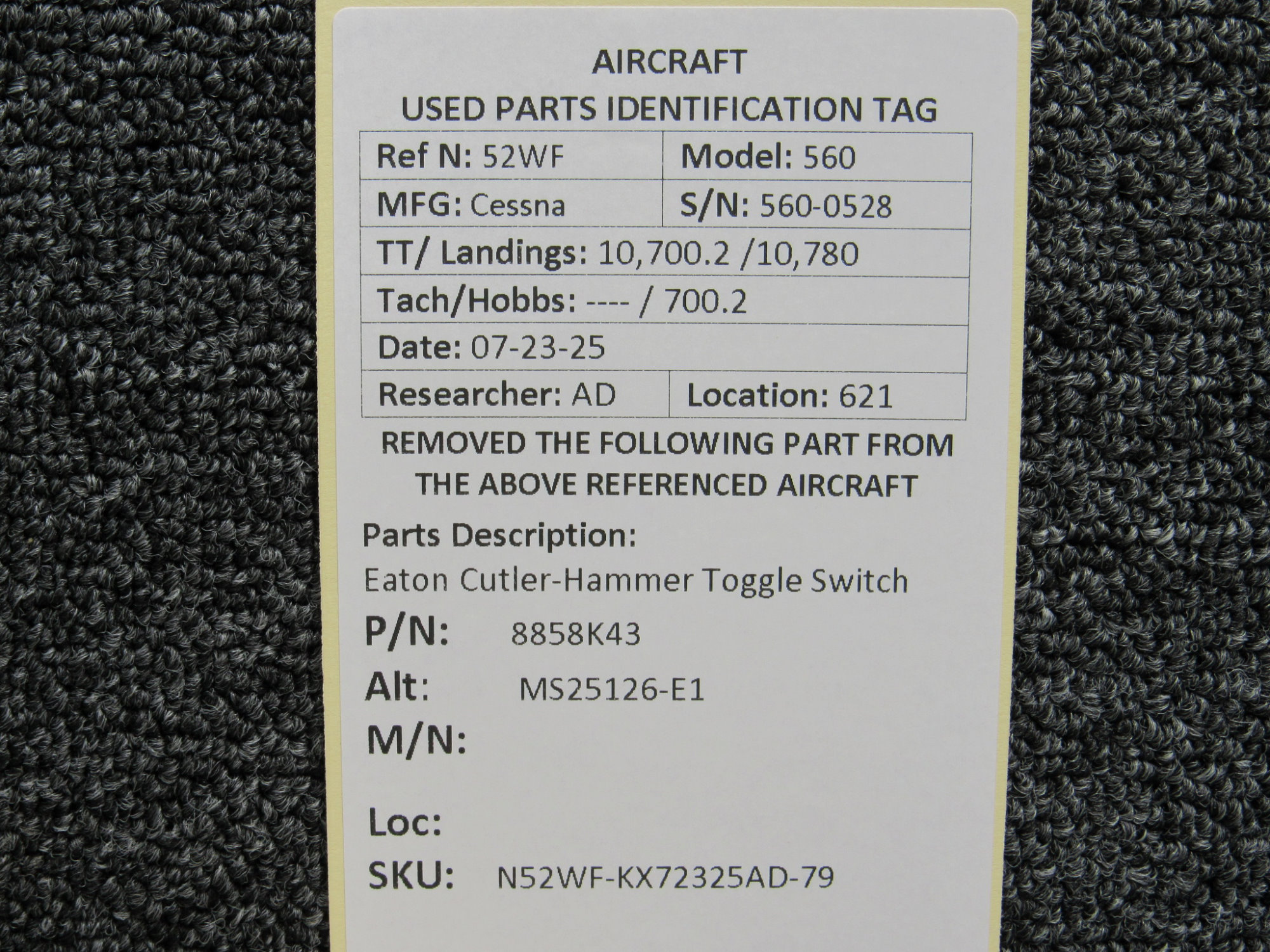 Unless specifically noted, most of our used airplane parts are sold in the condition they were removed, which means you should expect the usual signs of wear and tear.