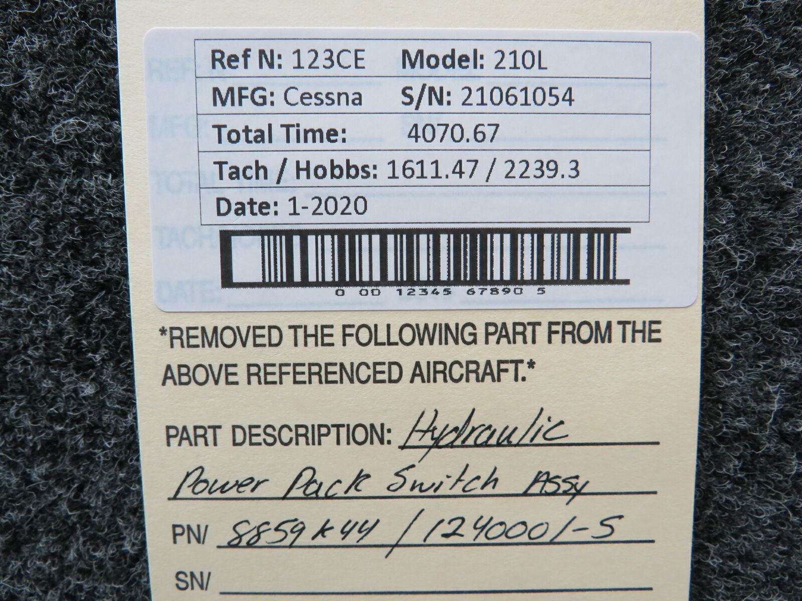 8859K44 / 1240001-5 Cessna 210L Hydraulic Power Pack Switch Assembly