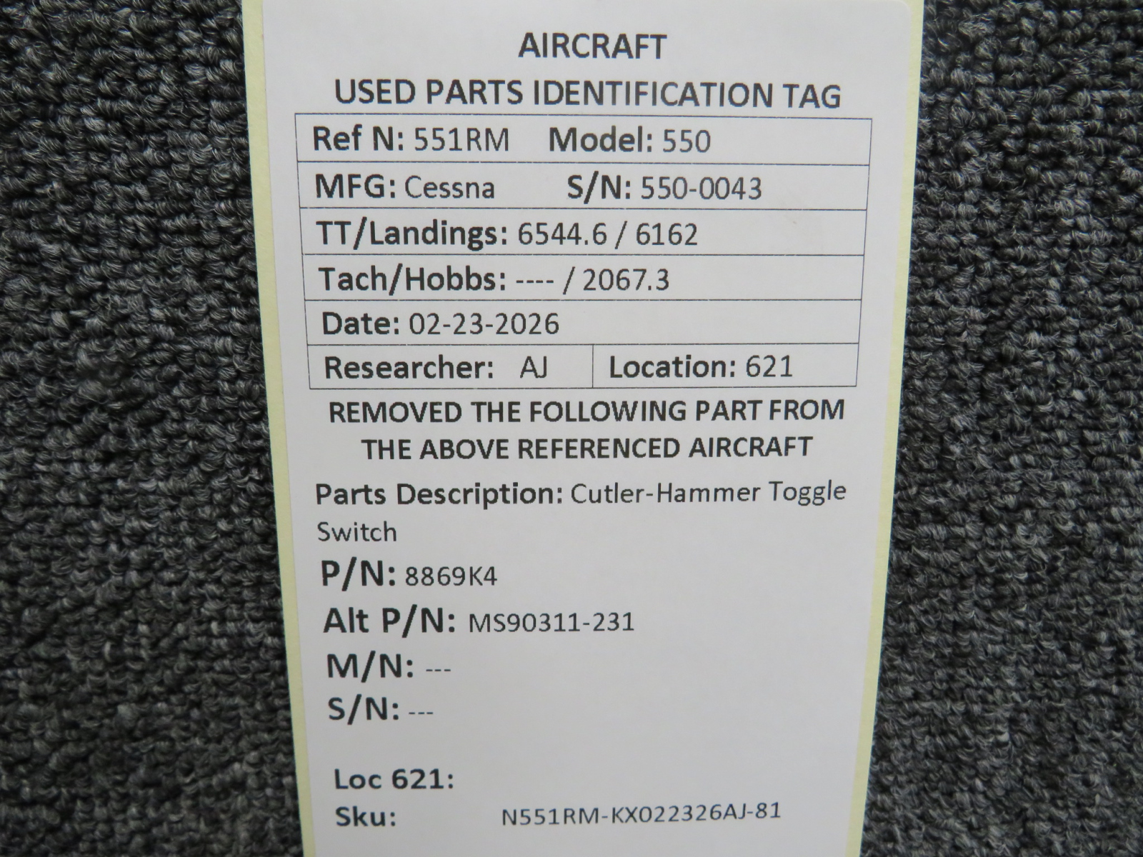 Unless specifically noted, most of our used airplane parts are sold in the condition they were removed, which means you should expect the usual signs of wear and tear.