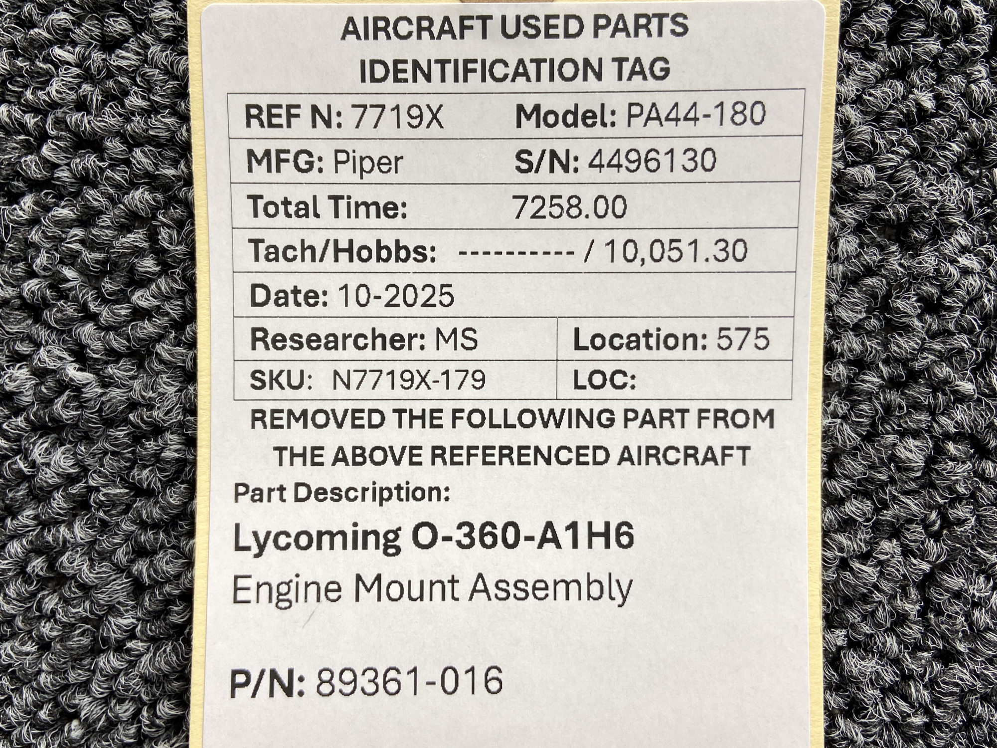 - Removed from Lycoming O-360-A1H6