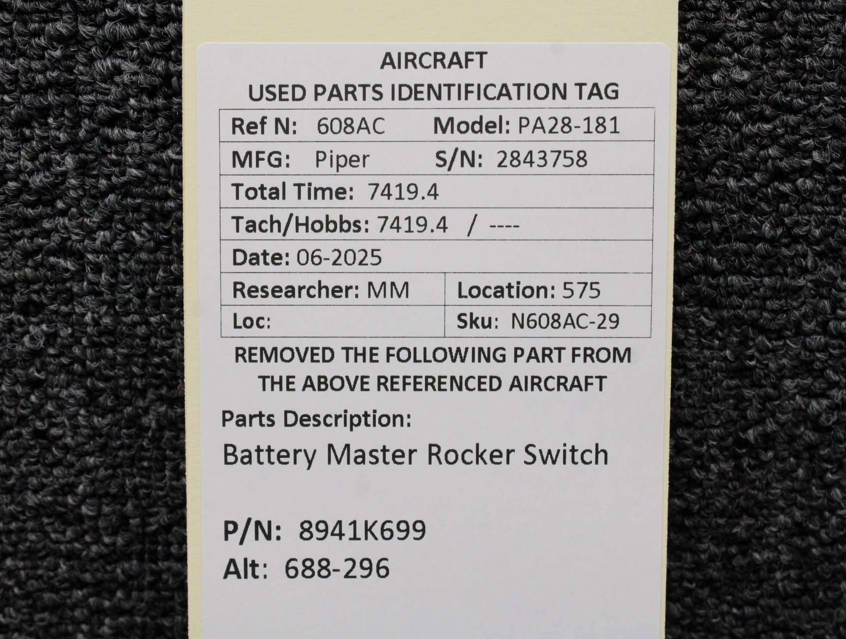 Unless specifically noted, most of our used airplane parts are sold in the condition they were removed, which means you should expect the usual signs of wear and tear.