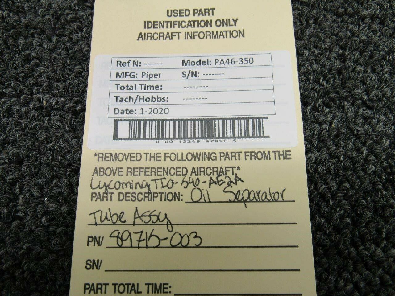 89715-003 Piper PA46-350 Lycoming TIO-540-AE2A Oil Separator Tube Assy